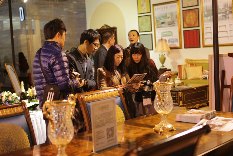 在人群之中,充滿濃郁典雅氣息的福溢家居3B16號展廳布置,格外惹人矚目。FOOKYIK攜歐式新品家具閃耀亮相,英、法、美、意風匯聚一堂,風采斐然,引來眾多觀眾駐足稱贊。