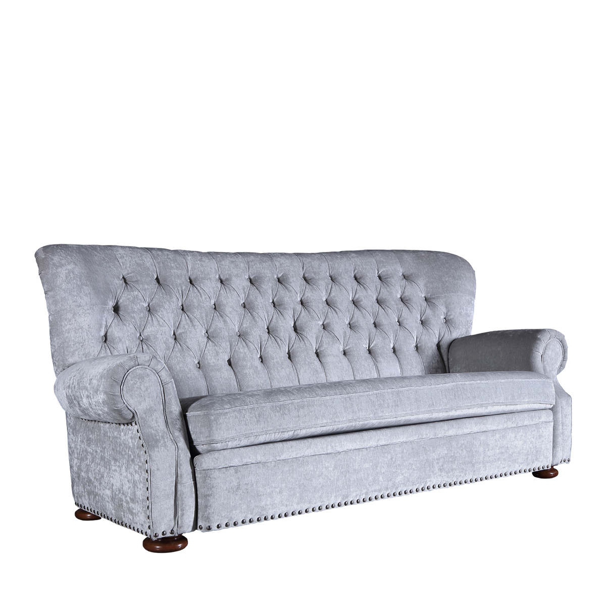 * 以法式經典的Wingback Chair(翼狀靠背扶手椅)為設計意念,以優美的拉扣造型與摩登的仿古銅釘為點綴裝飾,配上質樸的色調、寬大的尺寸與厚實的填充物,讓這款沙發兼具藝術審美與舒適功能;