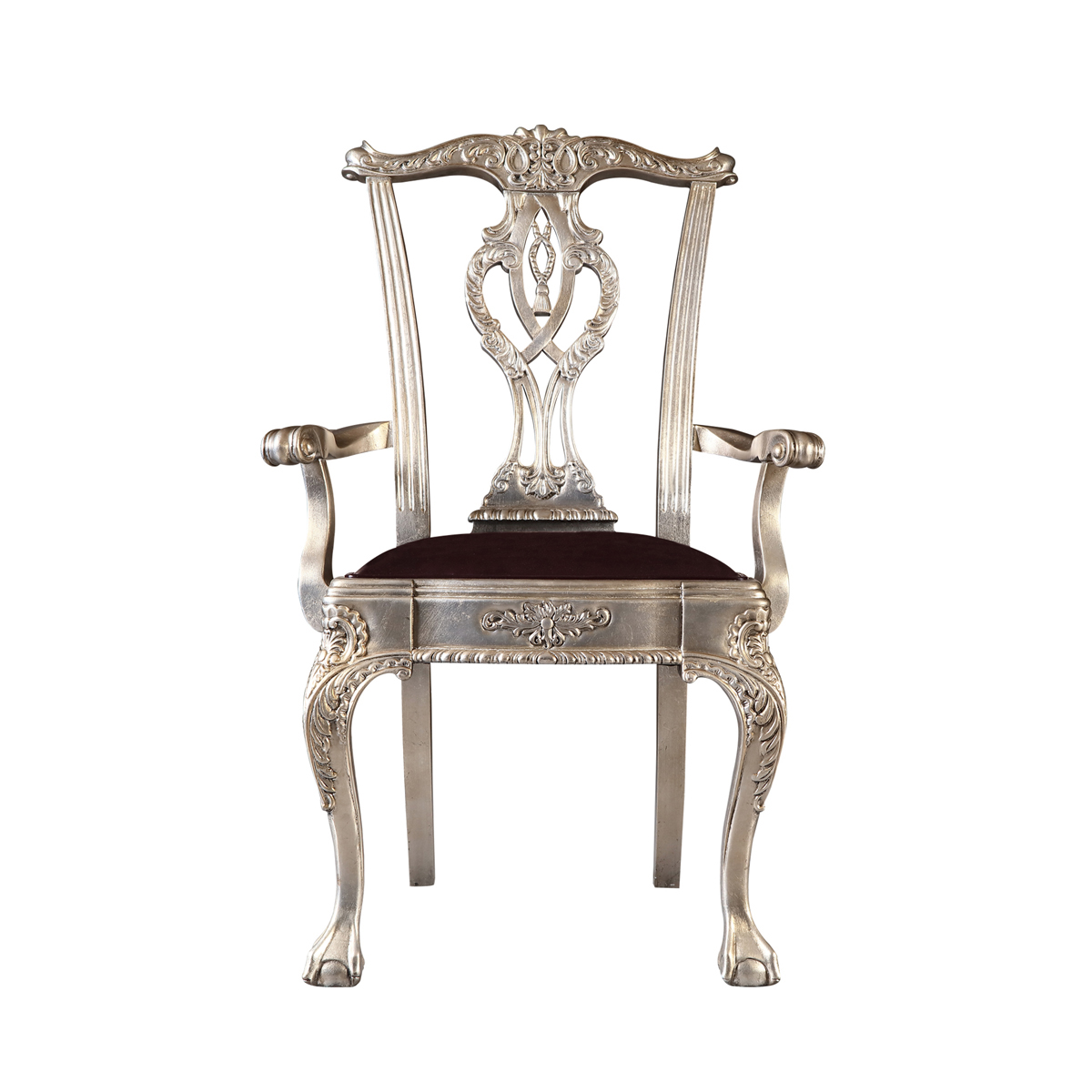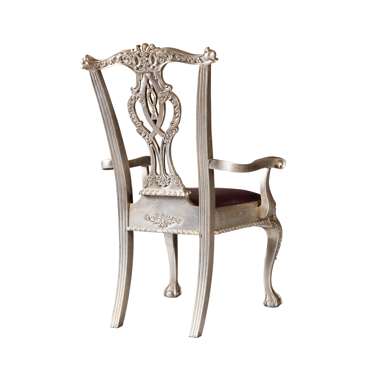 * 以明式家具為藍(lán)本的 Chippendale(齊彭代爾式)鏤空椅背和與卷葉雕刻結(jié)合的獸抓球彎腿設(shè)計(jì), 表達(dá)美國(guó)對(duì)英國(guó)潮流和中國(guó)文化的向往; 配以過百款布藝和皮革選擇, 讓傳統(tǒng)風(fēng)格充滿獨(dú)特性, 是豪華系列溫莎堡英式扶手椅的特色。