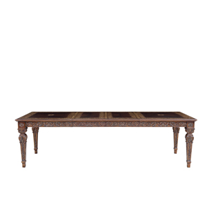 * 以現位于美國白宮中象征友誼和權力的堅毅桌(英語:Resolute desk)為設計意念, 實木雕刻與貼銀箔工藝相結合, 散發高貴典雅的氣息;舒適的軟包設計,演繹超脫塵俗的藝術美。