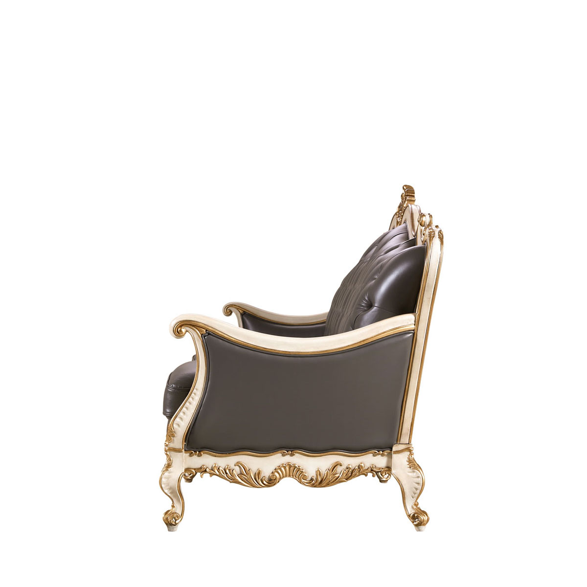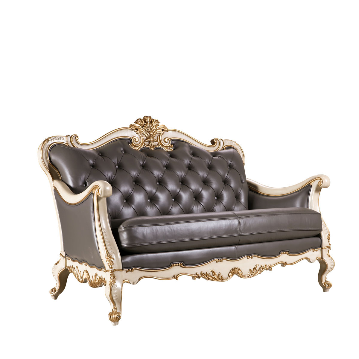 意大利維羅納沙發(fā)根據(jù)意大利宮殿造型設(shè)計(jì),線條優(yōu)美,結(jié)構(gòu)穩(wěn)固,采用光澤溫潤(rùn)的珠光皮材質(zhì),配上寶石鈕扣的裝飾,非常高貴典雅。靈動(dòng)優(yōu)美的山羊腳表現(xiàn)出力度與跳躍時(shí)的曲線美,帶來(lái)維羅納迷人氣息。
