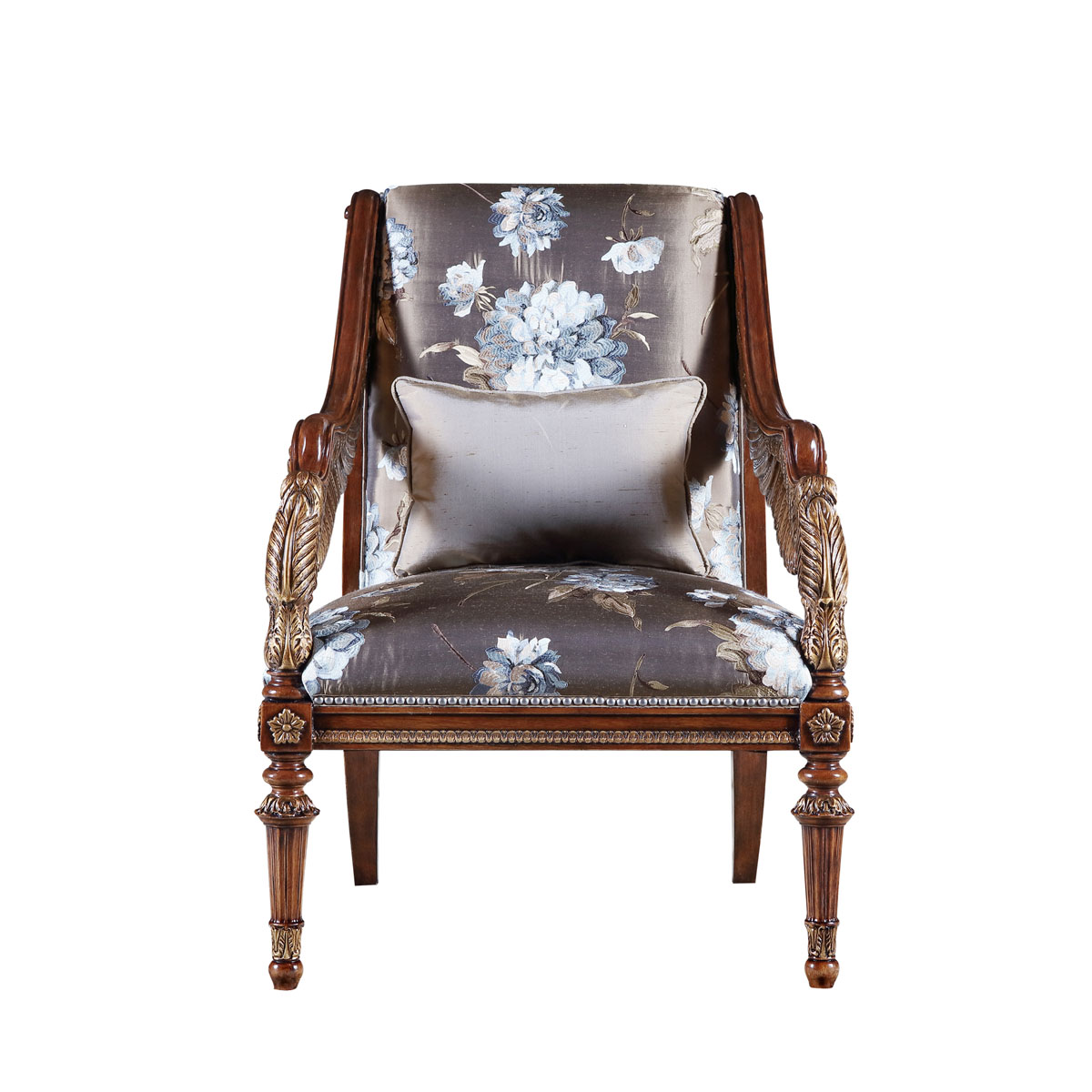 * 外形框架使用手工實木雕刻 * 椅背前后方及坐墊包有豐厚的填充物 * 提供多種面料可供選擇;