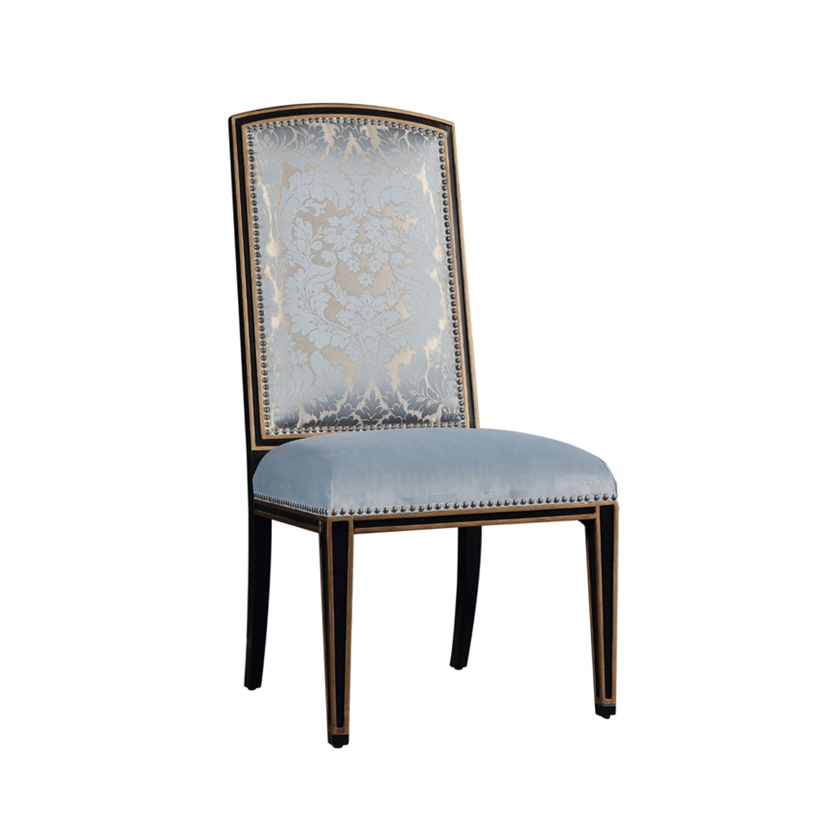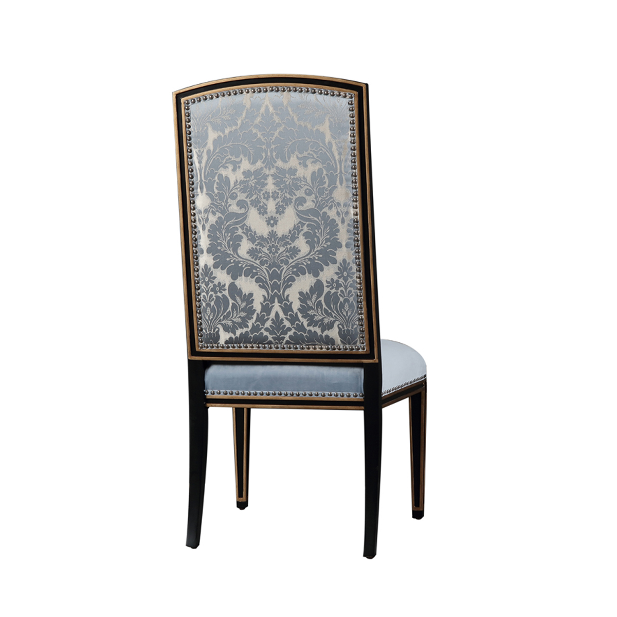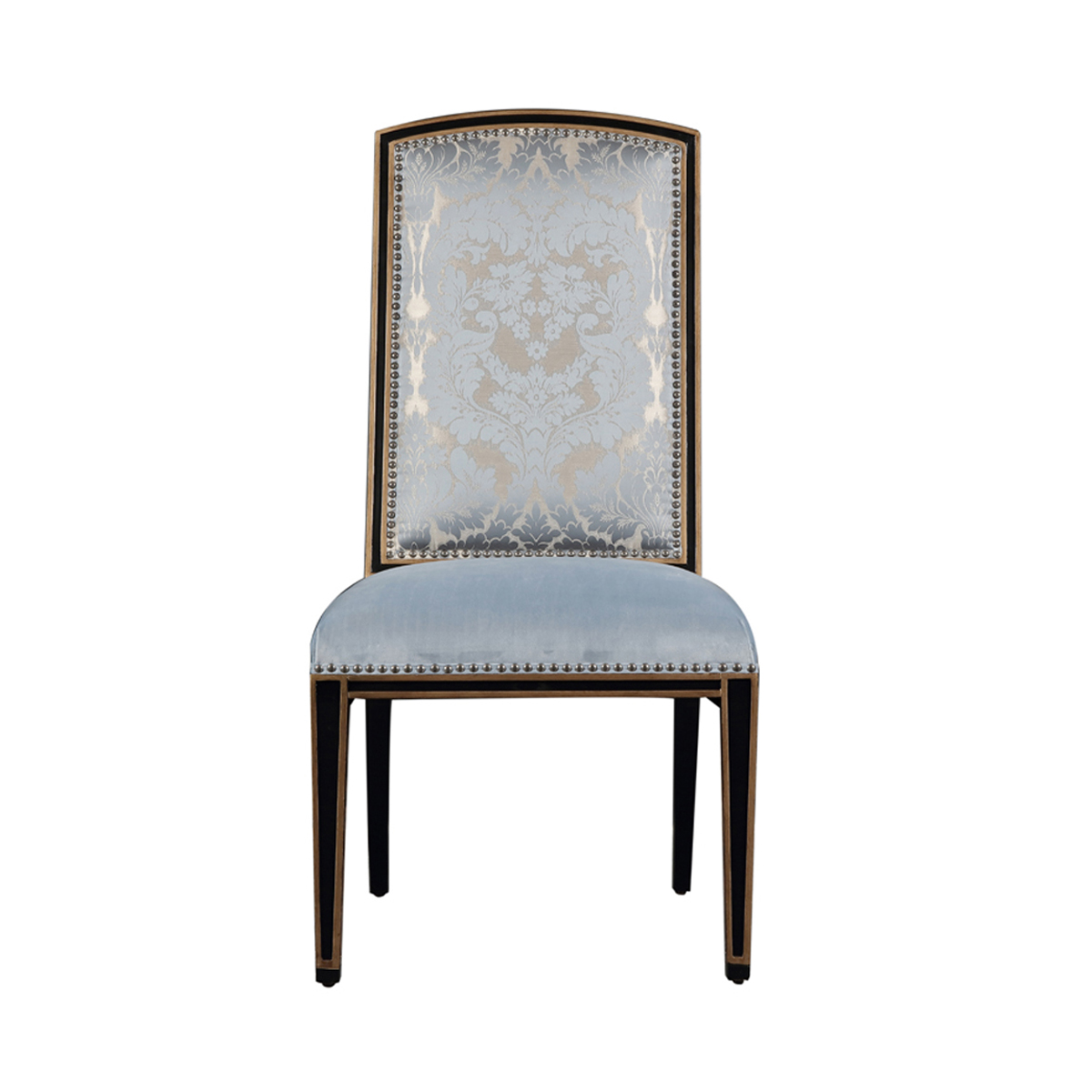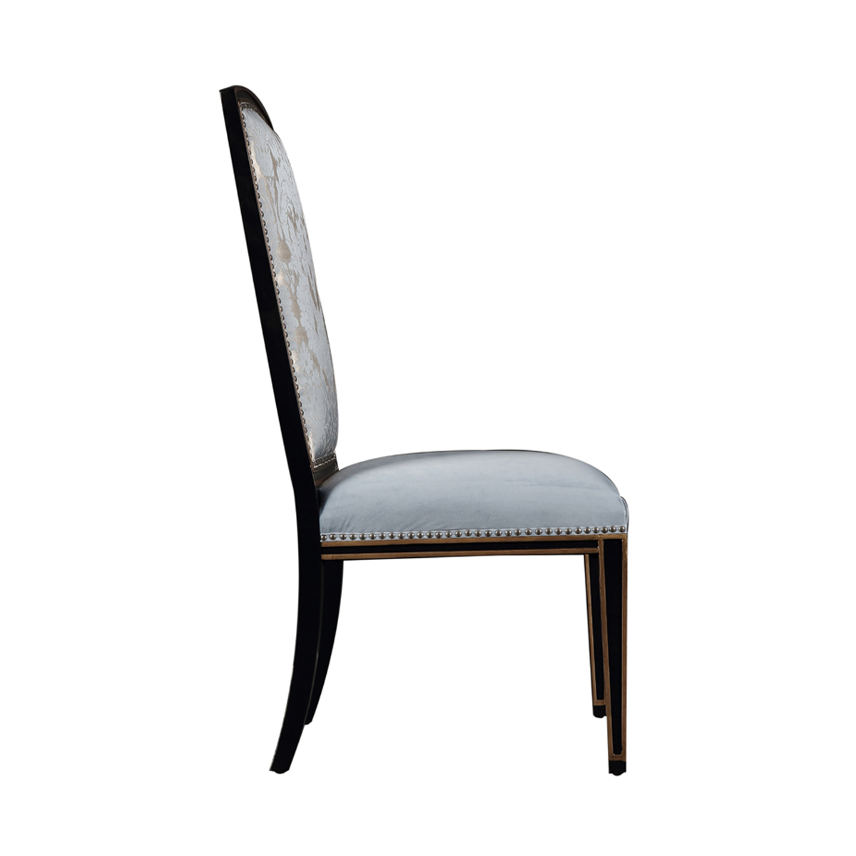 英吉利餐椅用藍灰色為主色,搭配少量黑色木質邊框,質感突顯,高貴典雅;藍灰色軟裝截取一半藍色的沉穩,一半灰色的質感,成為另類失重的色彩表達。讓餐廳氣質瞬間up!
