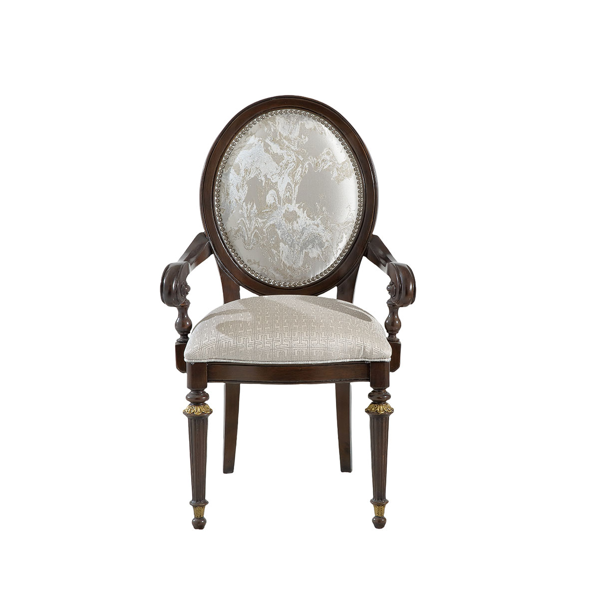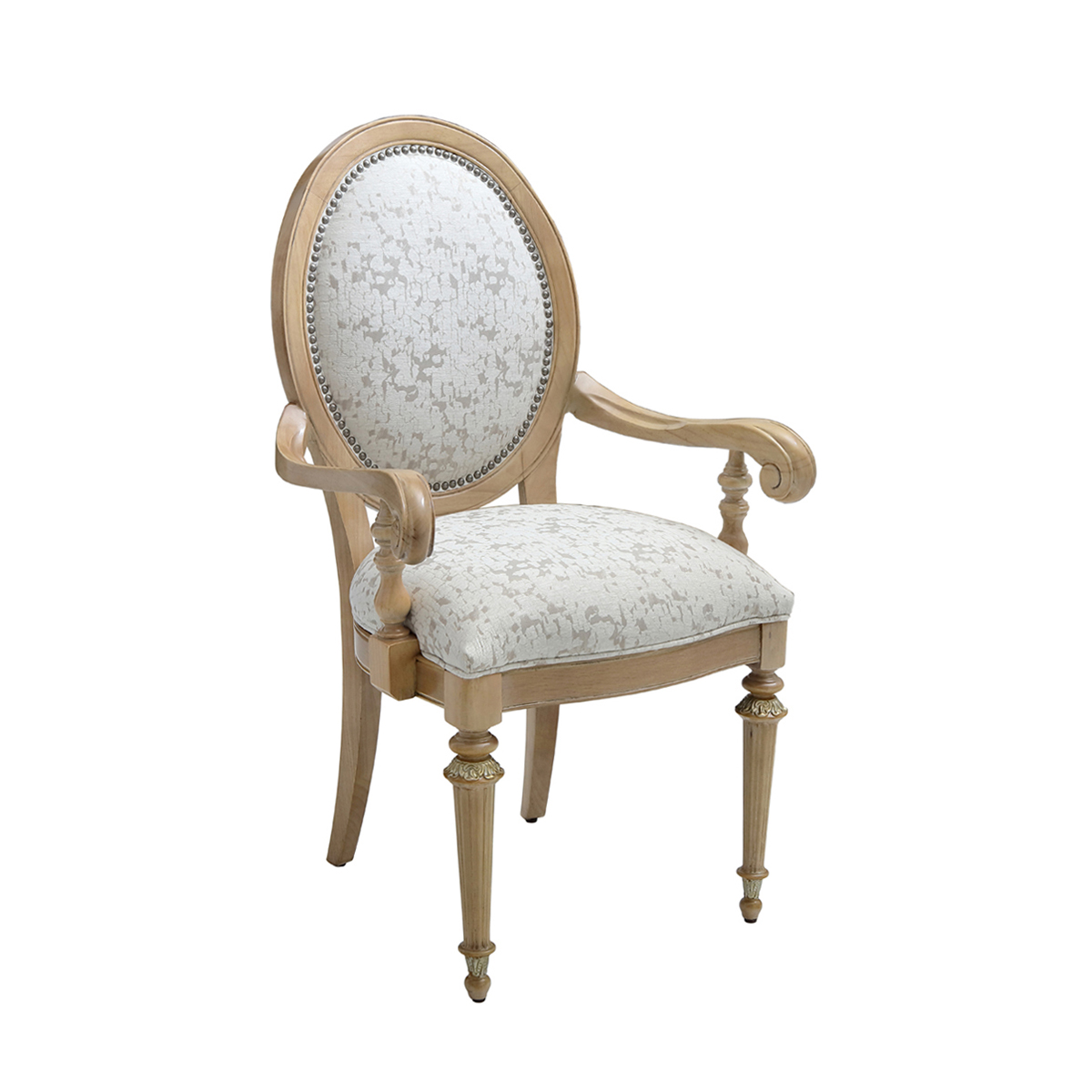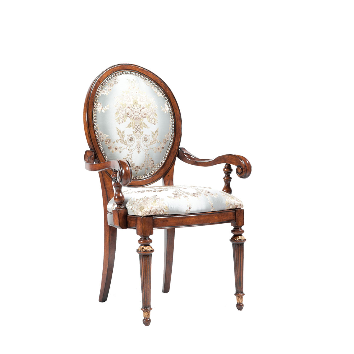 從17世紀意大利帝國EMPIRE風格中汲取靈感,以意大利的宮廷家具和羅馬的古建筑為元素,使用錐形的腿腳設計、精致的手工雕刻細節和描金工藝結合,顯 示王權的穩固地位;彎曲有度的扶手配以富貴花開的灰褐色印花布藝,精彩展現了意式家具奢華絢麗而又極富藝術人文氣息的迷人魅力。