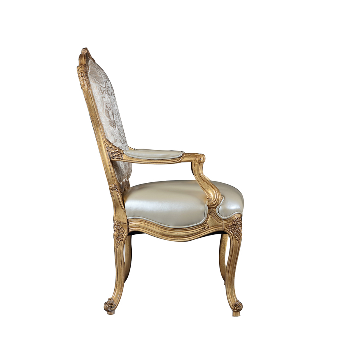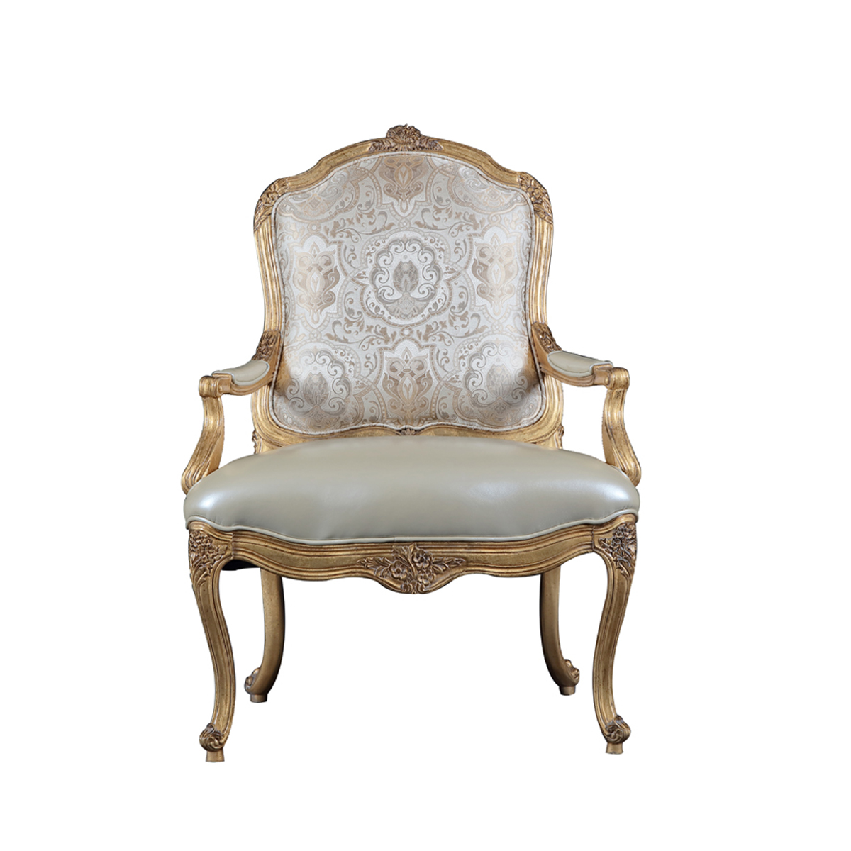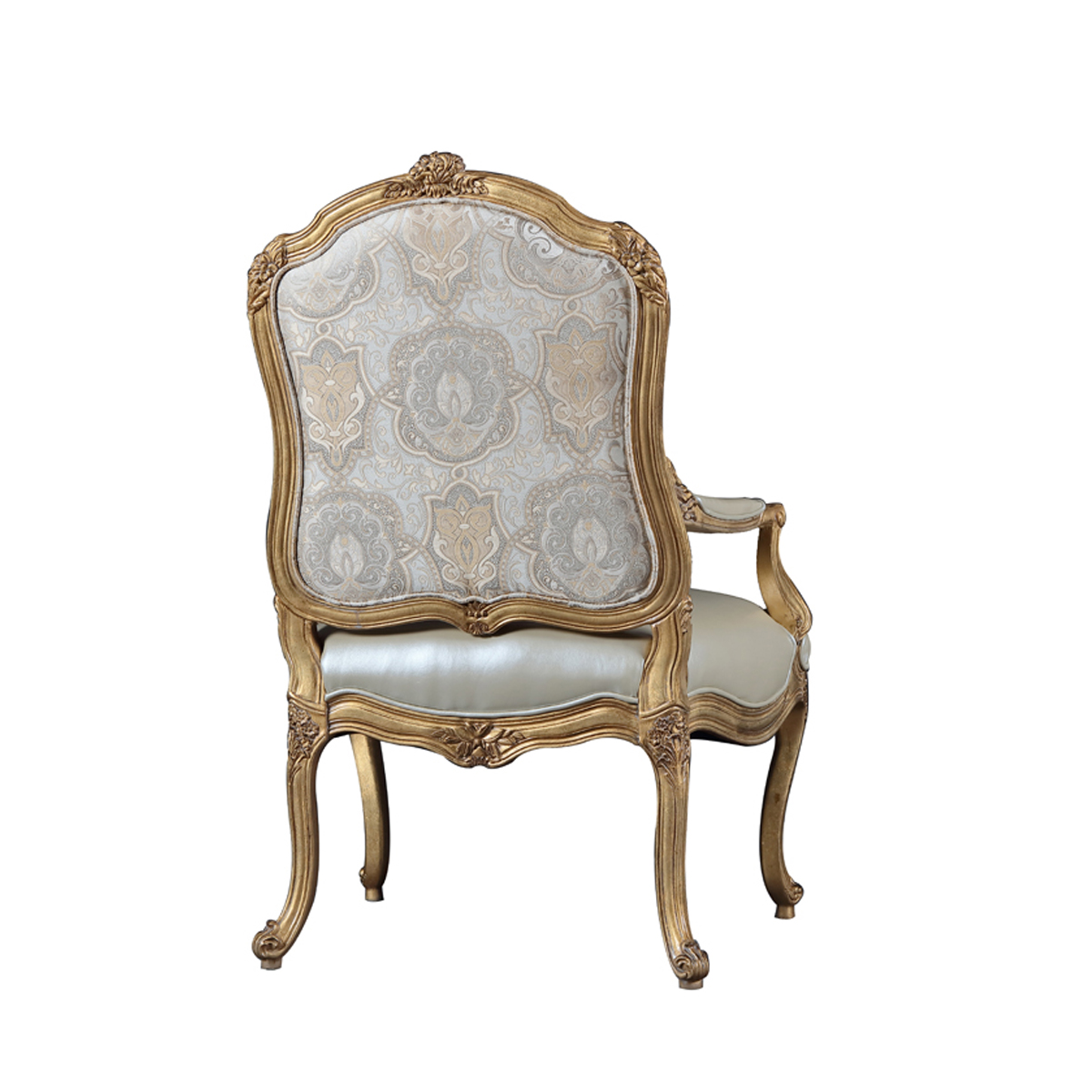 參考18世紀(jì)法國路易十五時期經(jīng)典的法式 Bergère 椅設(shè)計 ﹣多以婀娜的 Camelback Silhouette(駝峰輪廓)和外露的木框架表達;并配上細致的卷葉雕刻工藝、觸感舒適的布藝、法式經(jīng)典彎腳和金箔描金工藝,釋放法式浪漫情懷。