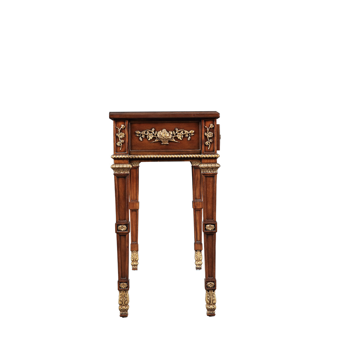 * 結實的連接技術以及描金的工藝 * 鏡子是鍍鋁鏡,始終保持鏡面清晰不會變形; * 三個儲物抽斗,其底部采用硬木實木滑軌; * 腳底部裝有可調腳釘;