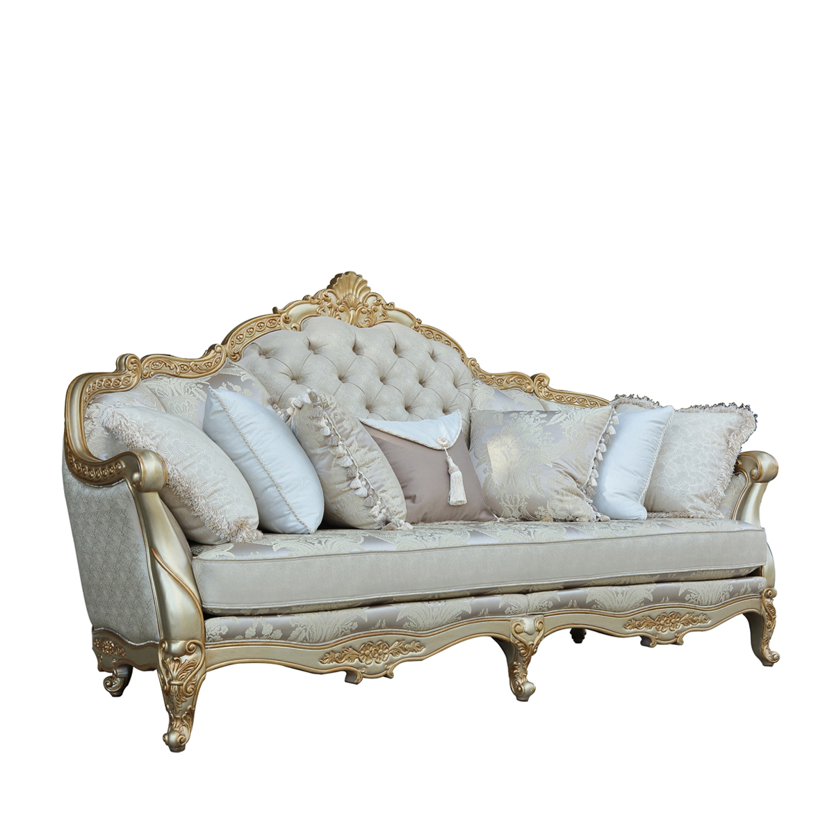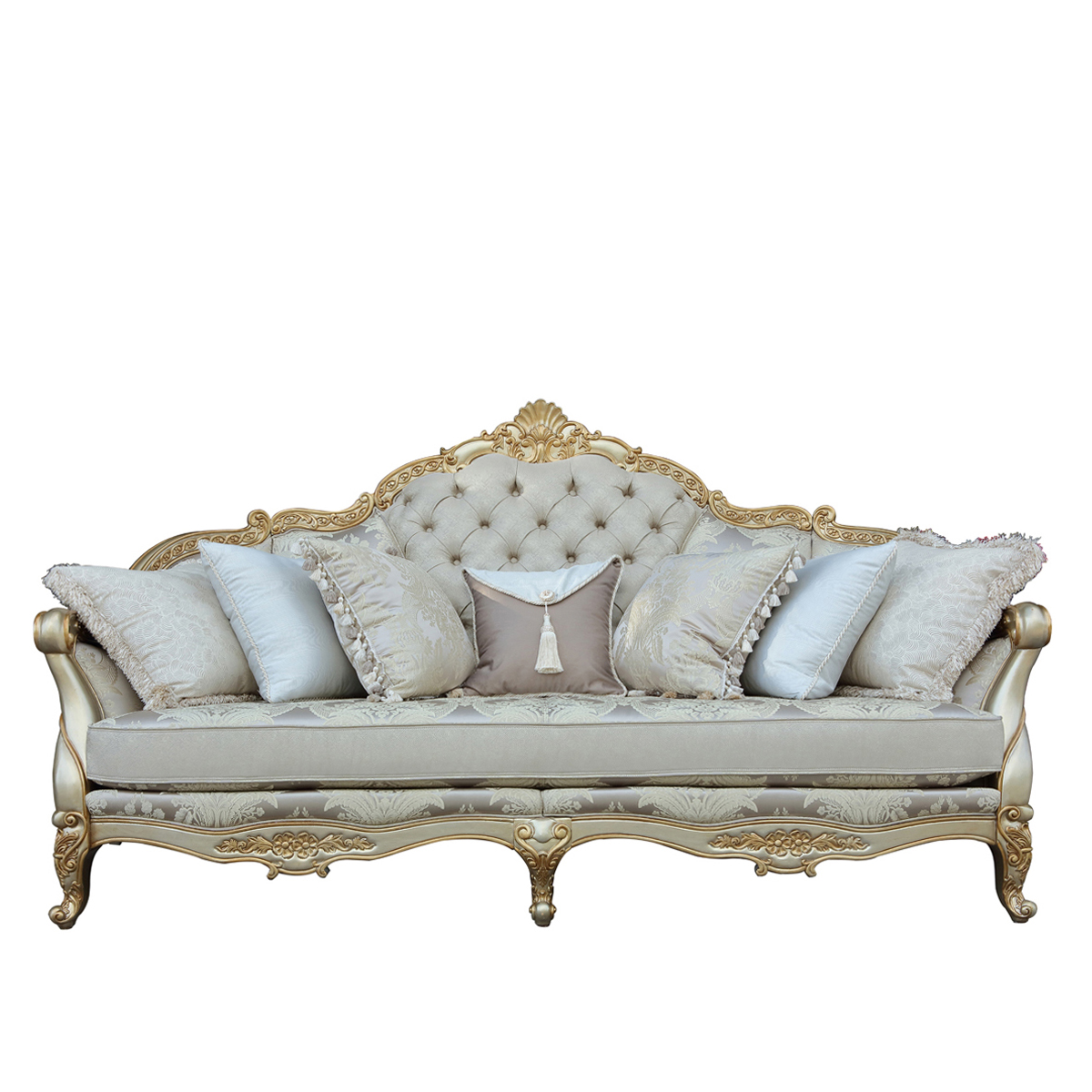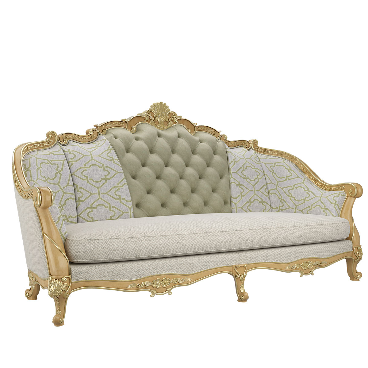 以路易時期新古典風格為設計靈感,以作為歌頌太陽王象征的太陽花連環雕刻為設計元素;配以實木花環和卷葉雕刻,以及洛可可經典彎腿,將新古典的美表現得淋漓盡致。匠心手工拉扣捫包在霜灰色與香檳銀箔色的呼映下實現視覺享受,傾情演繹了法式宮廷家具的精致尊貴。