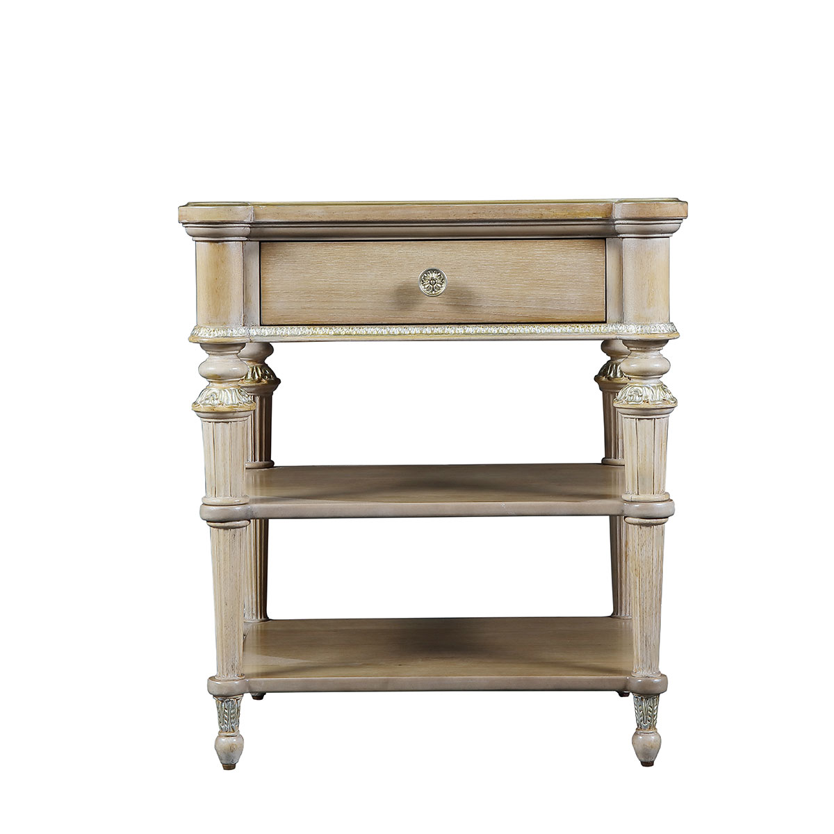 * 一個儲物抽斗,其底部采用經(jīng)典硬木實(shí)木滑軌; * 上面為開空設(shè)計,可放便存取物品; * 腳部裝有可調(diào)整腳釘;