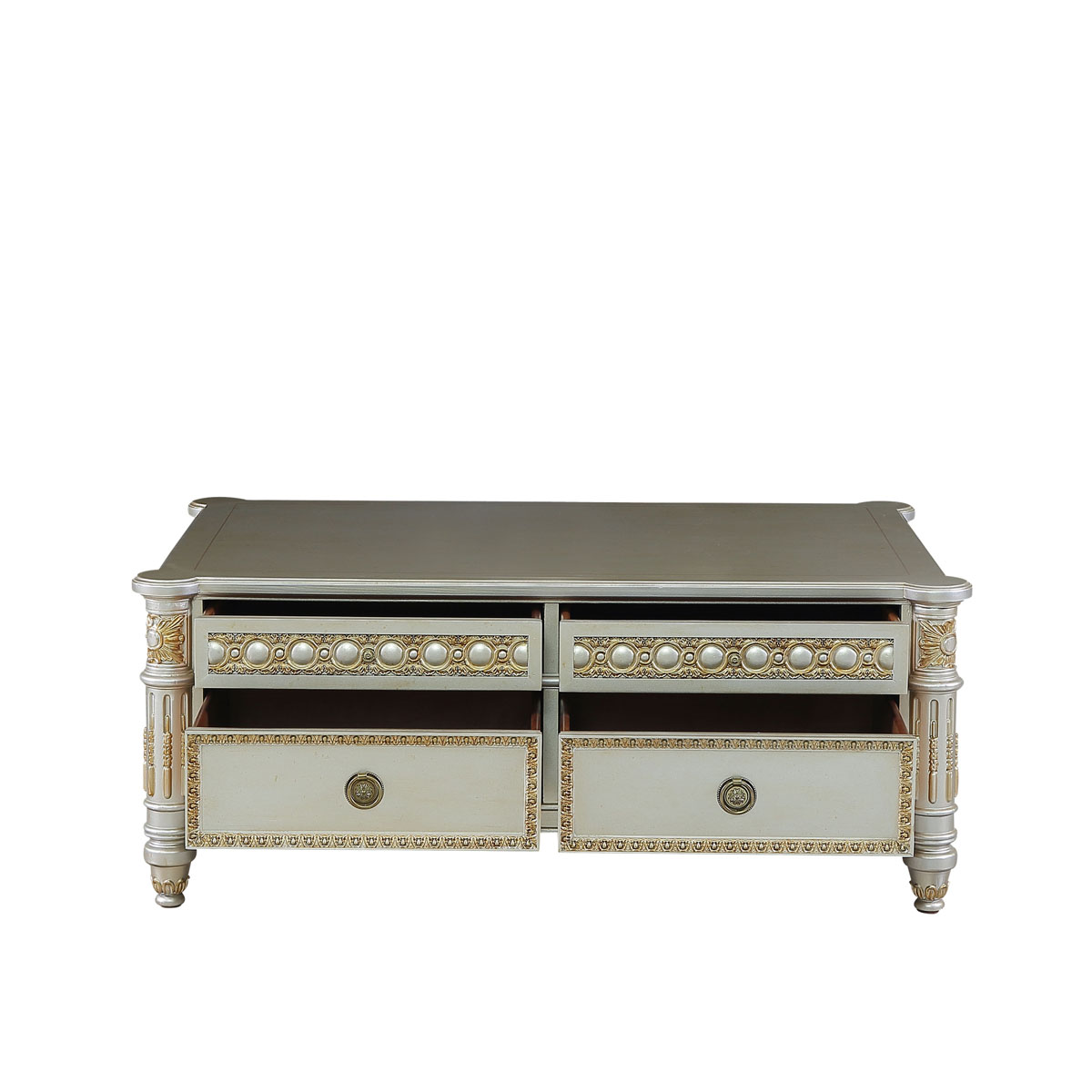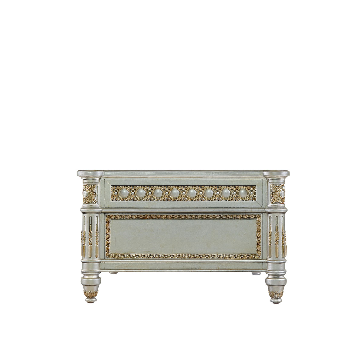 * 為表現(xiàn)法國路易時(shí)期的莊嚴(yán)和浪漫,以法國凡爾賽宮為設(shè)計(jì)元素。使用歌頌路易十四時(shí)期的太陽花雕刻,顯示其王權(quán)穩(wěn)固地位的錐形腿腳設(shè)計(jì);配以鉆石圖案木皮貼面和貼金工藝,完美演繹了法式宮廷家具的奢華尊貴。