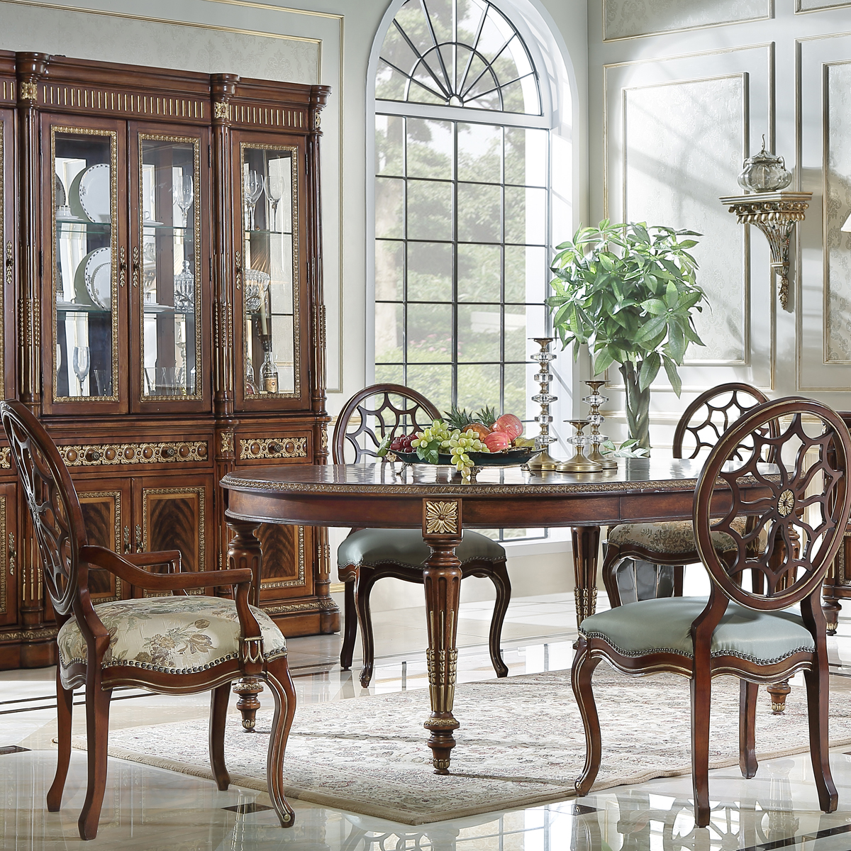 * 參考喬治三世時期的古董造型設計,使用輪子構造椅背和安妮王后腿,配以精致的手工雕刻細節和涂金工藝、浪漫的花形布藝面料和厚實柔軟的填充物,是豪華系列凡爾賽玫瑰法式單椅的特色。