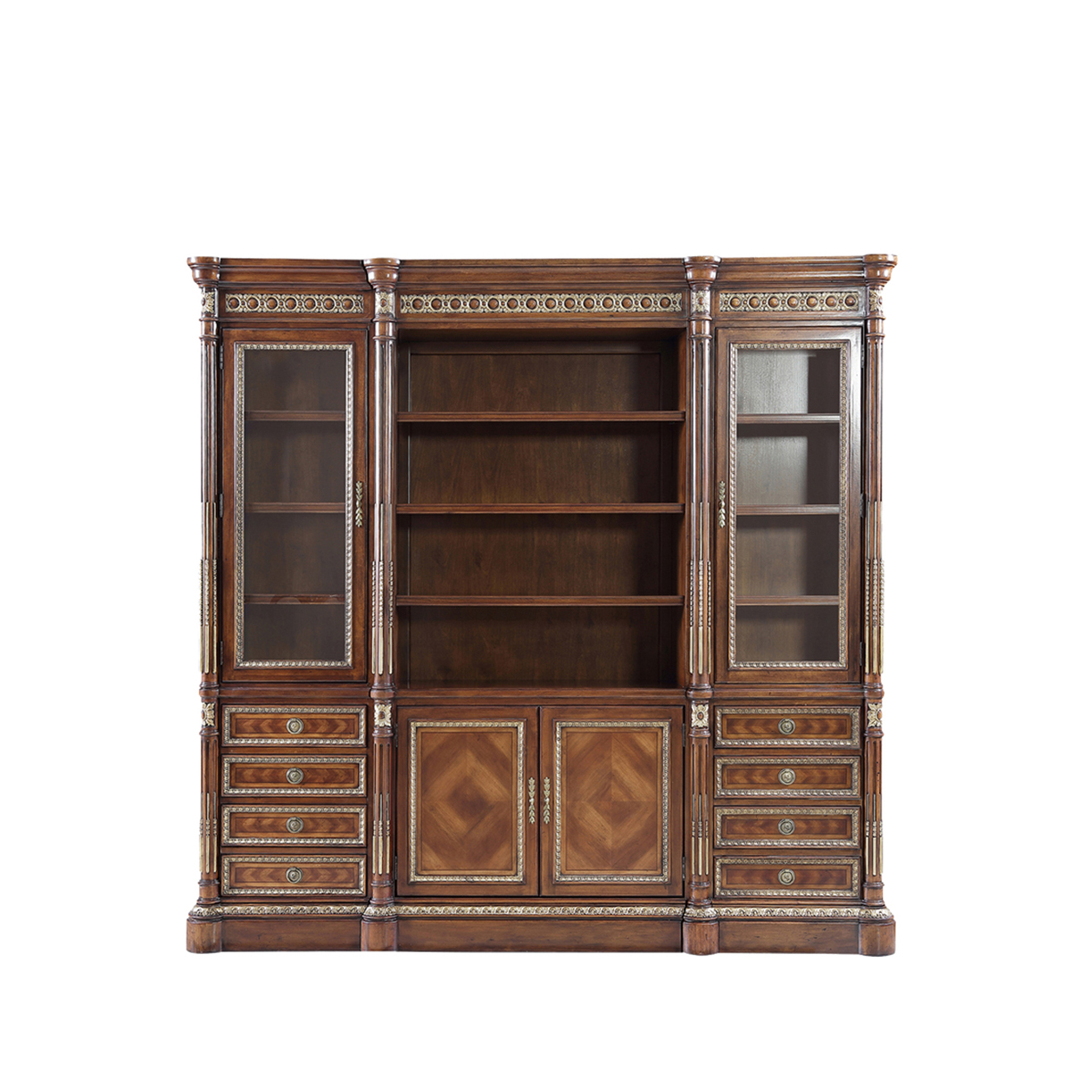 以法國凡爾賽宮為設計元素,表現法國路易時期的莊嚴和浪漫。多隔層大容量的合理設計,功能完善的組合書柜,是蘊藏知識和靈感的空間,木皮拼花紋理增添藝術韻味,是家中的“博物館”,讓我們與外界的關系更密切,無窮無盡的奧妙,等待每一個人去探索。