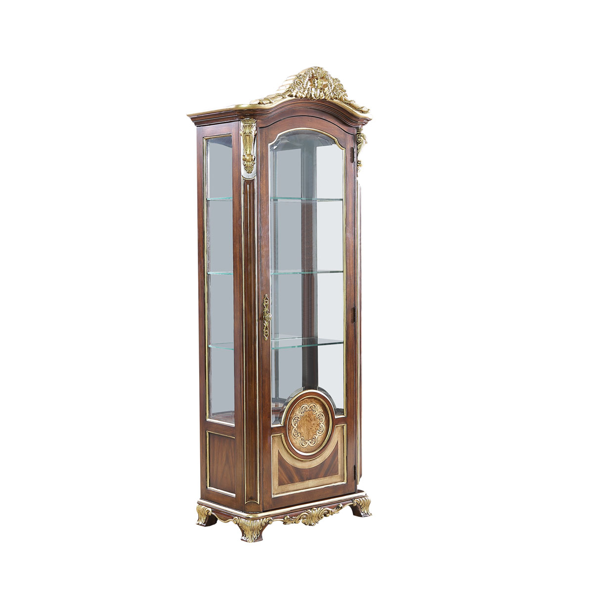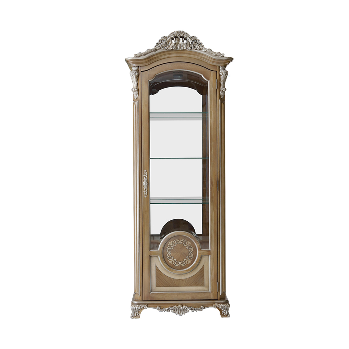 * 精致的手工雕刻細節(jié) * 實木框玻璃門,門內(nèi)有三塊玻璃層板; * 底部裝有可調(diào)層板;