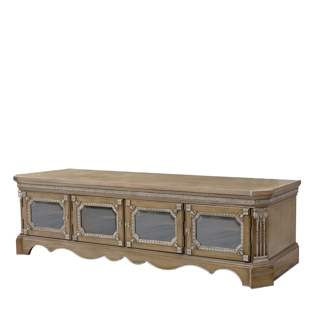 * 手工雕刻的工藝細(xì)節(jié)結(jié)實的連接技術(shù)18道以上的多步驟油漆工藝 * 四個實木框玻璃門,門內(nèi)各有一塊可調(diào)層板; * 腳底部裝有可調(diào)腳釘