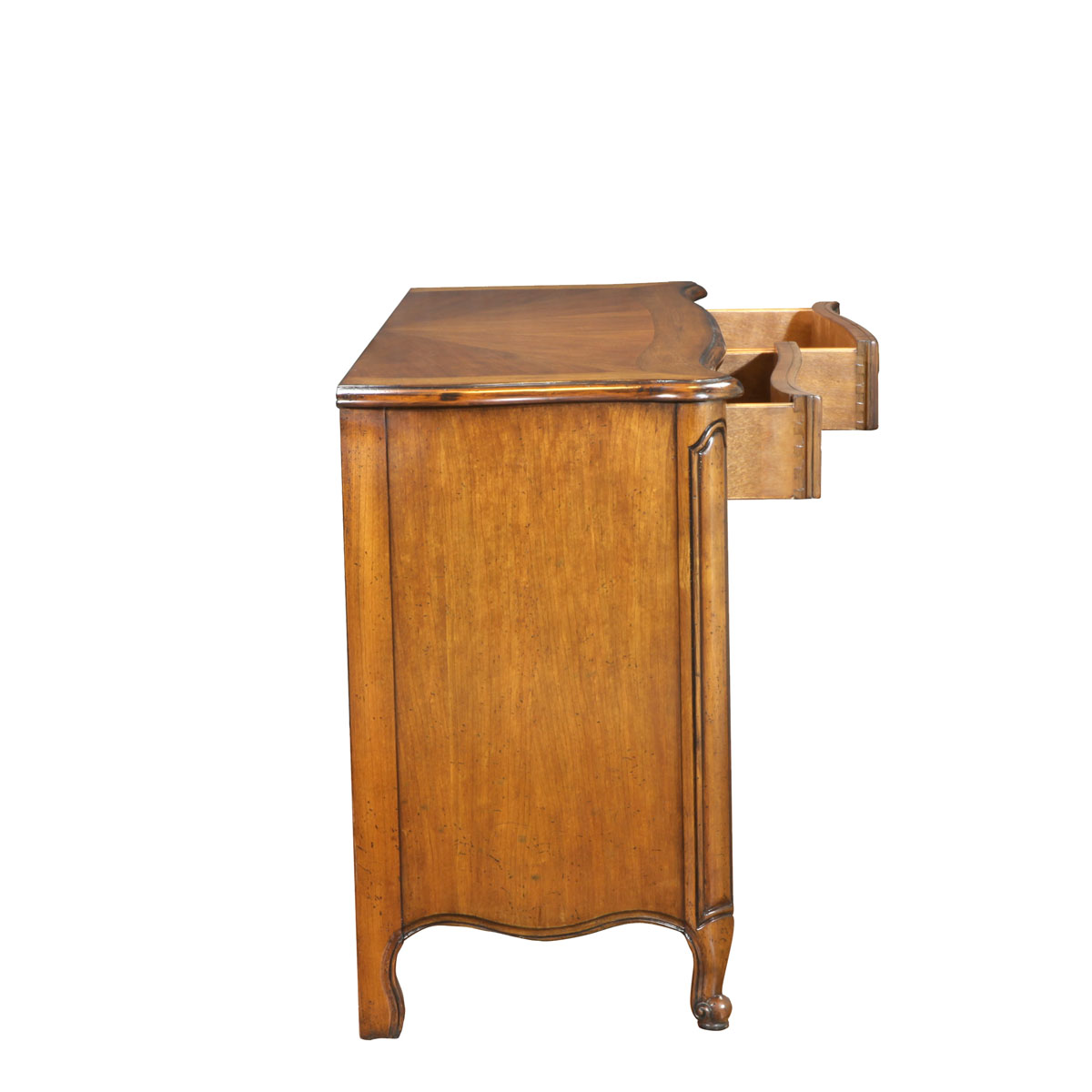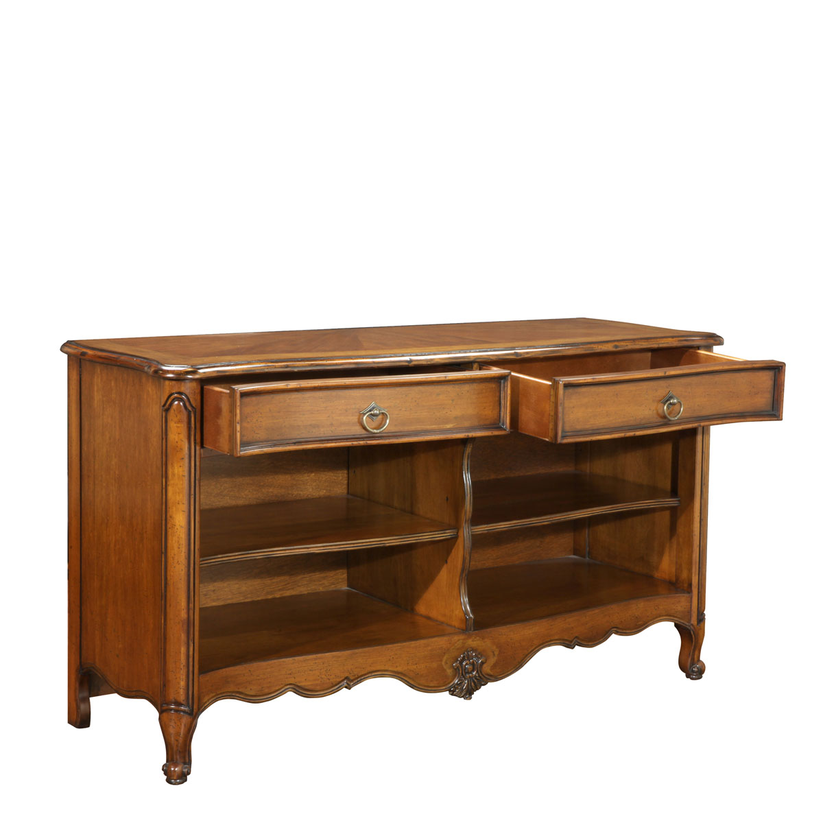 * 手工雕刻的阿坎瑟斯卷葉和攝政時(shí)期風(fēng)格的彎腳設(shè)計(jì) * 結(jié)實(shí)的連接技術(shù) * 兩個(gè)儲(chǔ)物抽斗,并底部采用經(jīng)典硬木實(shí)木滑軌設(shè)計(jì);左右各有1塊可調(diào)整層板