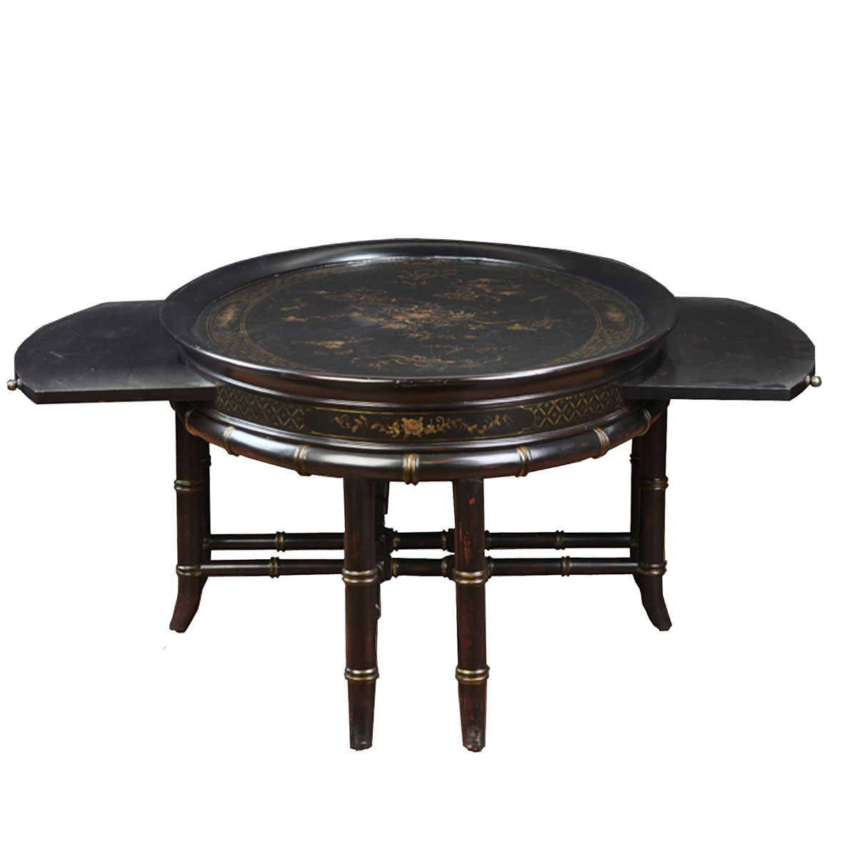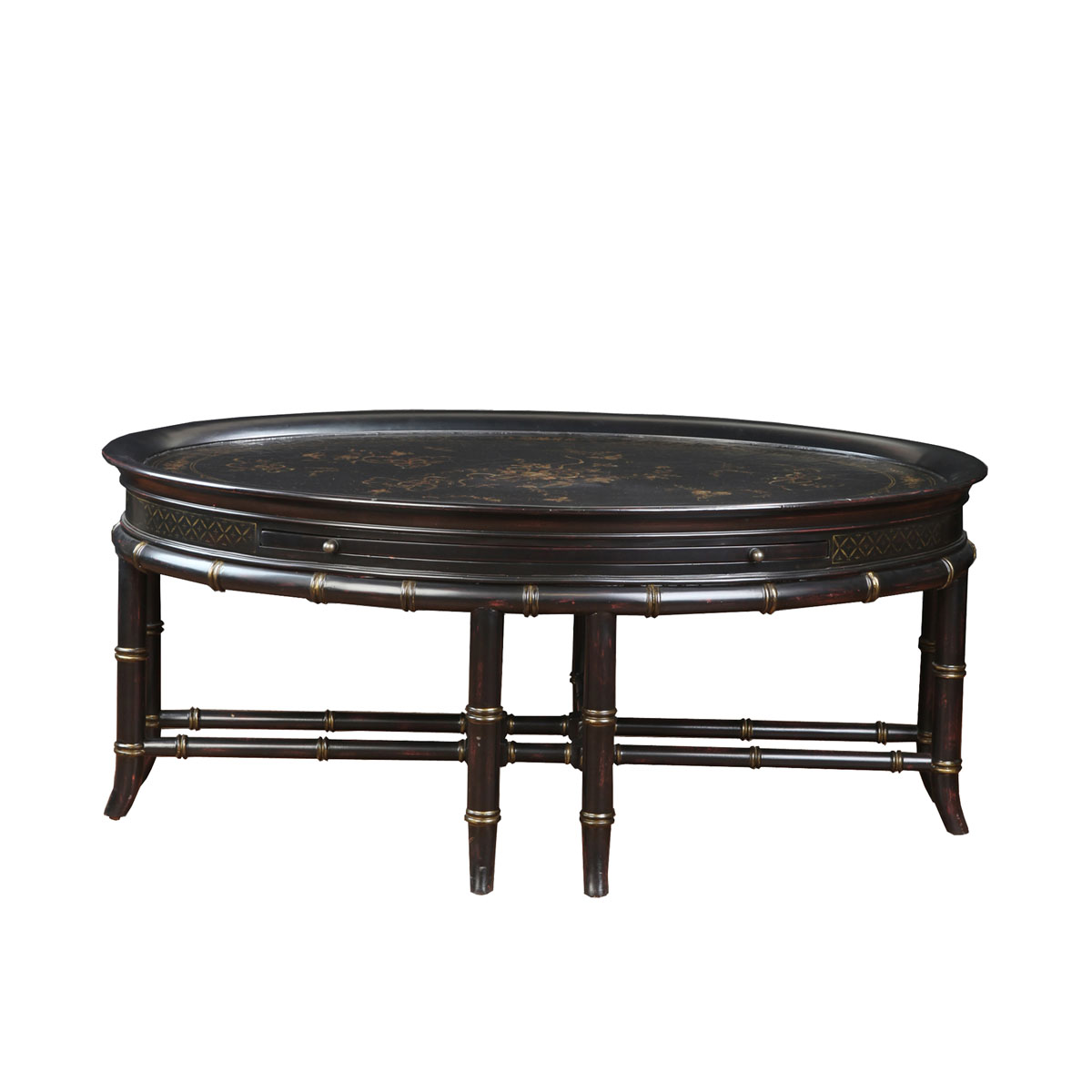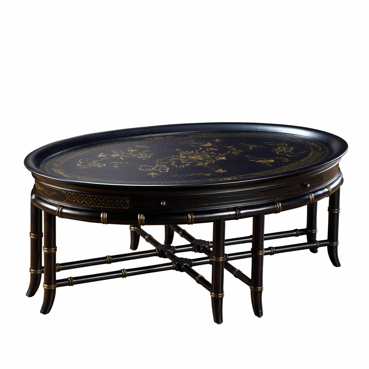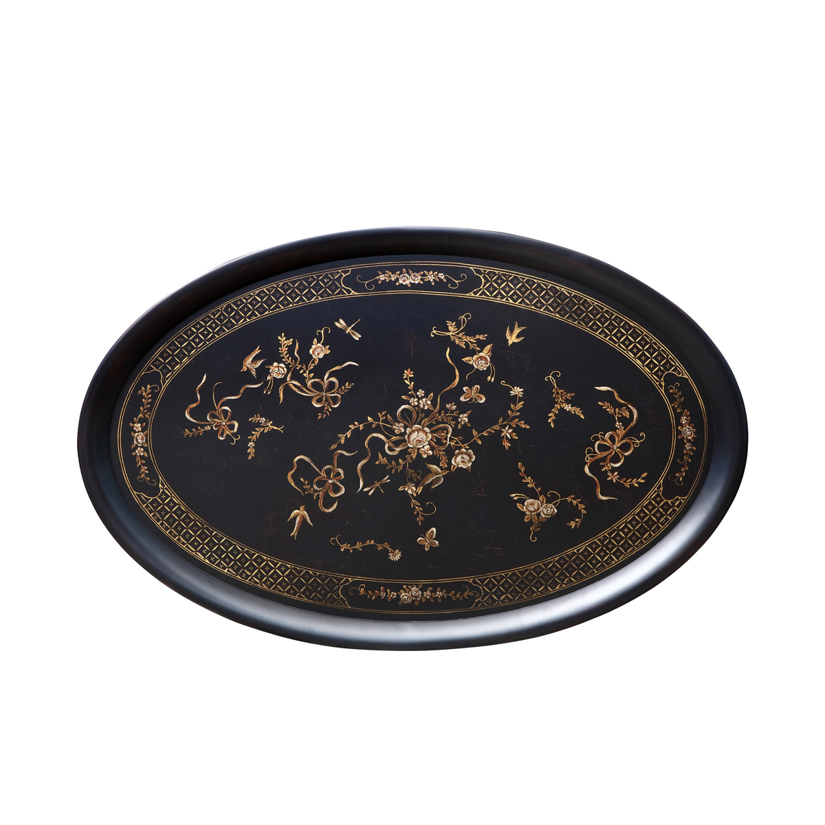 * 以18世紀(jì)英吉利——“日不落帝國(guó)”為設(shè)計(jì)主題,把東西方的多種藝術(shù)元素結(jié)合在一起。有來(lái)自東方意念的竹子造型車(chē)枳柱和高貴的黑底金漆配搭;也有參考東方山水畫(huà)的手繪植物圖案。配上托盤(pán)式面板設(shè)計(jì),是經(jīng)典系列英吉利經(jīng)典英式橢圓咖啡桌的特色。