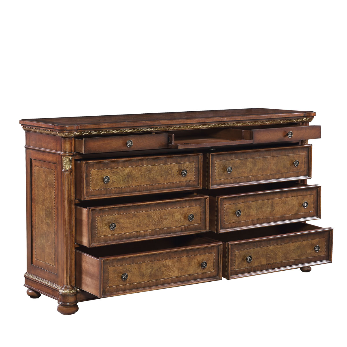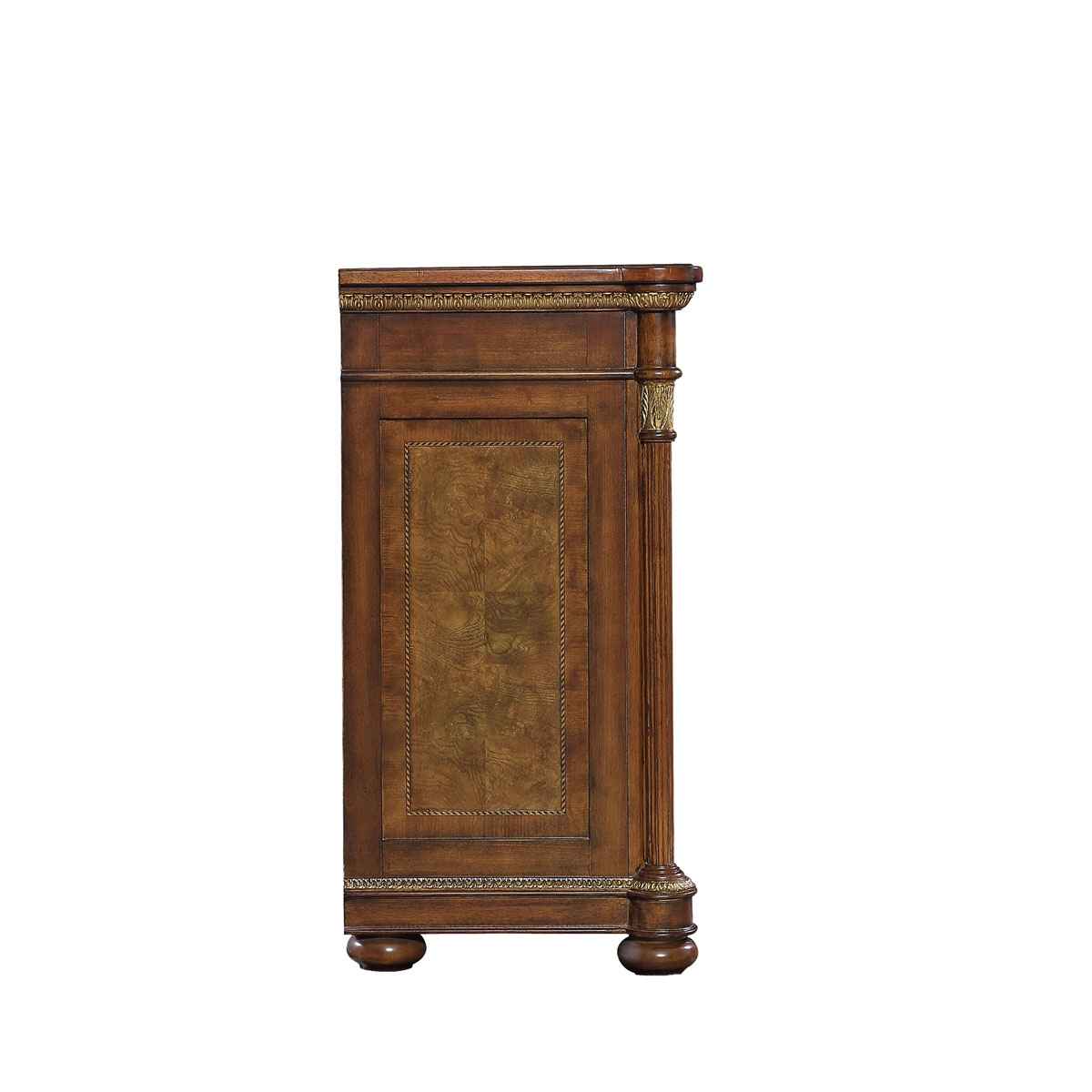 * 從17世紀(jì)意大利帝國EMPIRE風(fēng)格中汲取靈感,結(jié)合意大利人重生活更懂藝術(shù)的品位追求,以羅馬的古建筑為元素,使用華麗莊嚴(yán)的 Corinthian Order(科林斯式)羅馬雕刻柱與描金工藝結(jié)合,配以阿坎賽斯葉狀雕刻與精美的木皮貼面,精彩展現(xiàn)了意式家具奢華絢麗而又極富藝術(shù)人文氣息的迷人魅力。