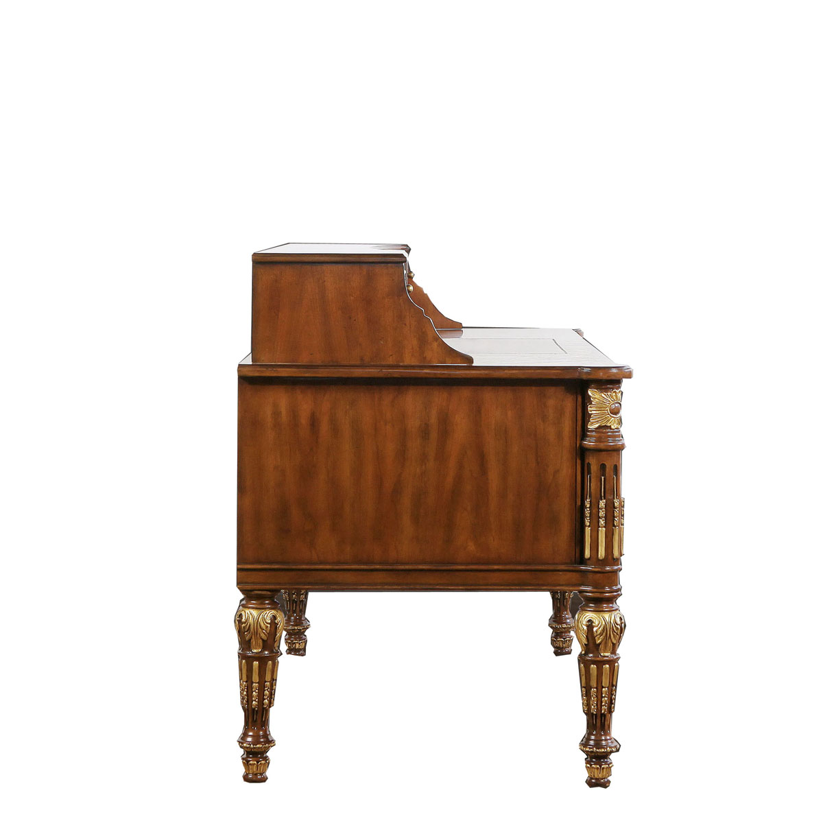 * 女主人關于美的秘密,或許只有梳妝臺知道。卷葉植物與直線凹槽裝飾的錐形腳,象征著皇室的卓越品味;華麗金箔貼飾和鉆石形拼花圖案,傳遞出奢華浪漫的專屬風格;而豐富的小抽屜與層格設計,則用實用功能向玲瑯滿目的化妝品與珍寶首飾致敬。