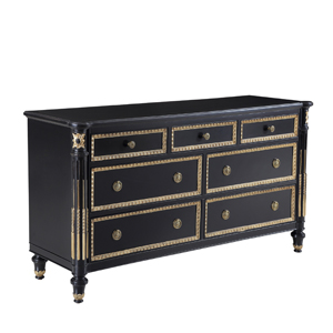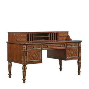 * 為表現法國路易時期的莊嚴和浪漫,以法國凡爾賽宮為設計元素。使用歌頌路易十四時期的太陽花連環雕刻,配以優雅的花形腿腳設計、古銅色的球形把手和貼金工藝,完美演繹了法式宮廷家具的奢華尊貴。