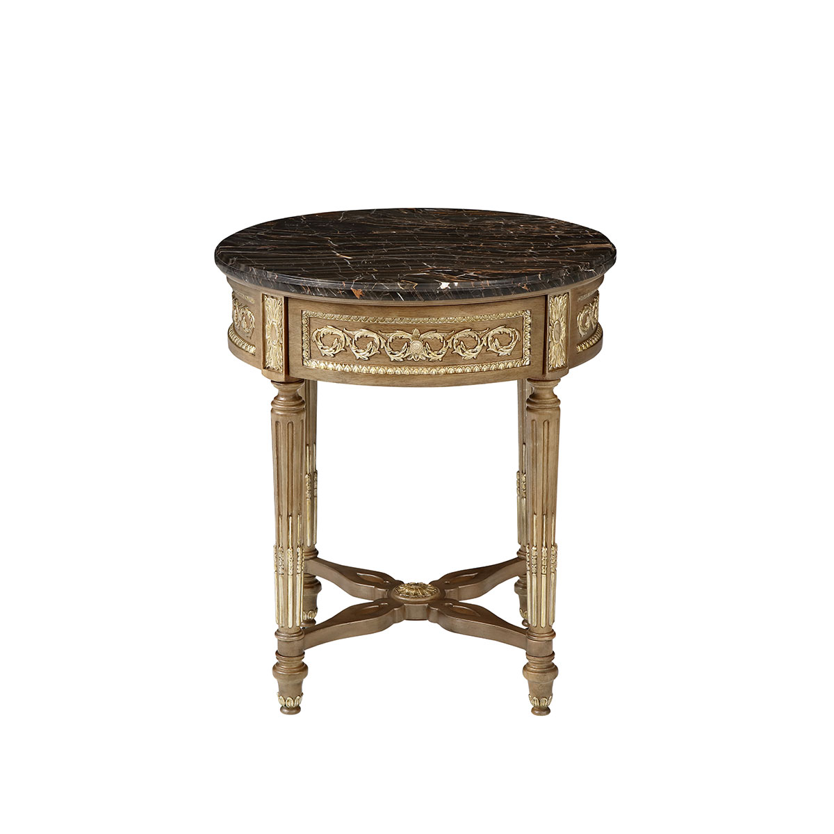 * 為表現法國路易時期的莊嚴和浪漫,以法國凡爾賽宮為設計元素。使用歌頌路易十四時期的太陽花連環雕刻,顯示其王權穩固地位的錐形腿腳設計;配以哥特式建筑中的大圓窗骨架設計、珍稀大理石臺面、建筑柱雕刻與絢麗的貼金工藝,完美演繹了法式宮廷家具的奢華尊貴。