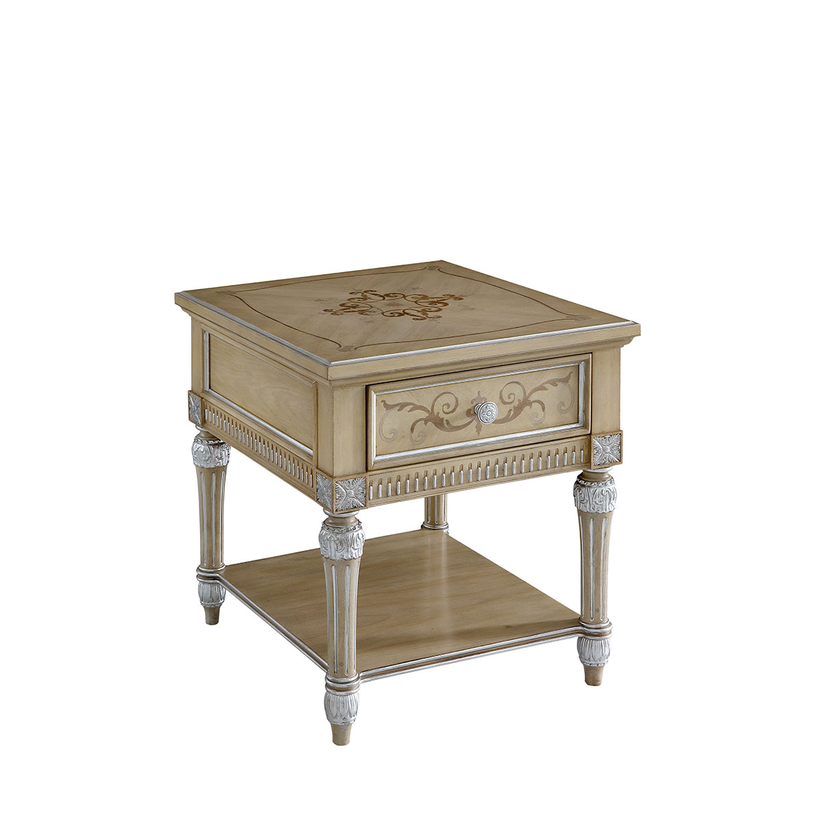 * 手工雕刻的工藝細節結實的連接技術18道以上的多步驟油漆工藝; * 一個儲物抽斗,其底部采用經典的硬木實木滑軌 * 底部的層板可放置家庭裝飾品; * 腳可拆裝 * 底部裝有四個調整腳釘;