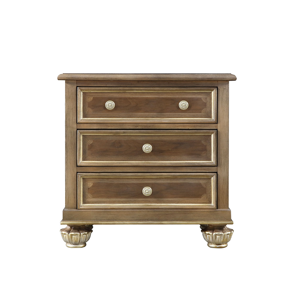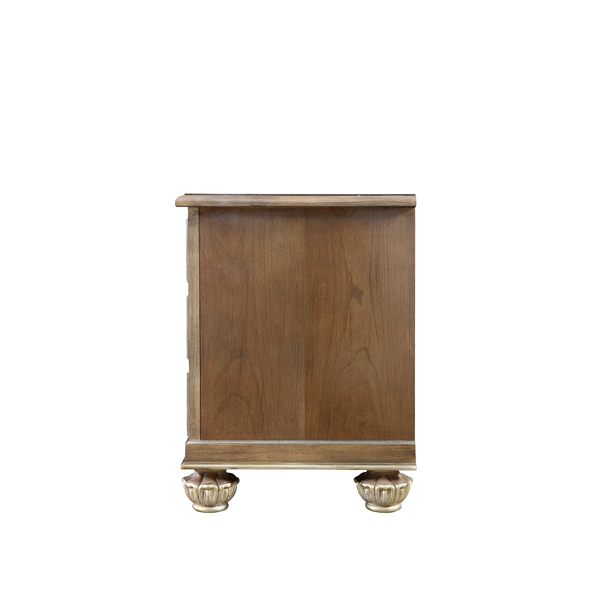 * 手工拼花藤蔓效果,用多種上等木皮拼制而成 * 三個儲物斗,底部采用經(jīng)典的硬木實木滑軌; * 腳腳底部裝有可調(diào)腳釘;