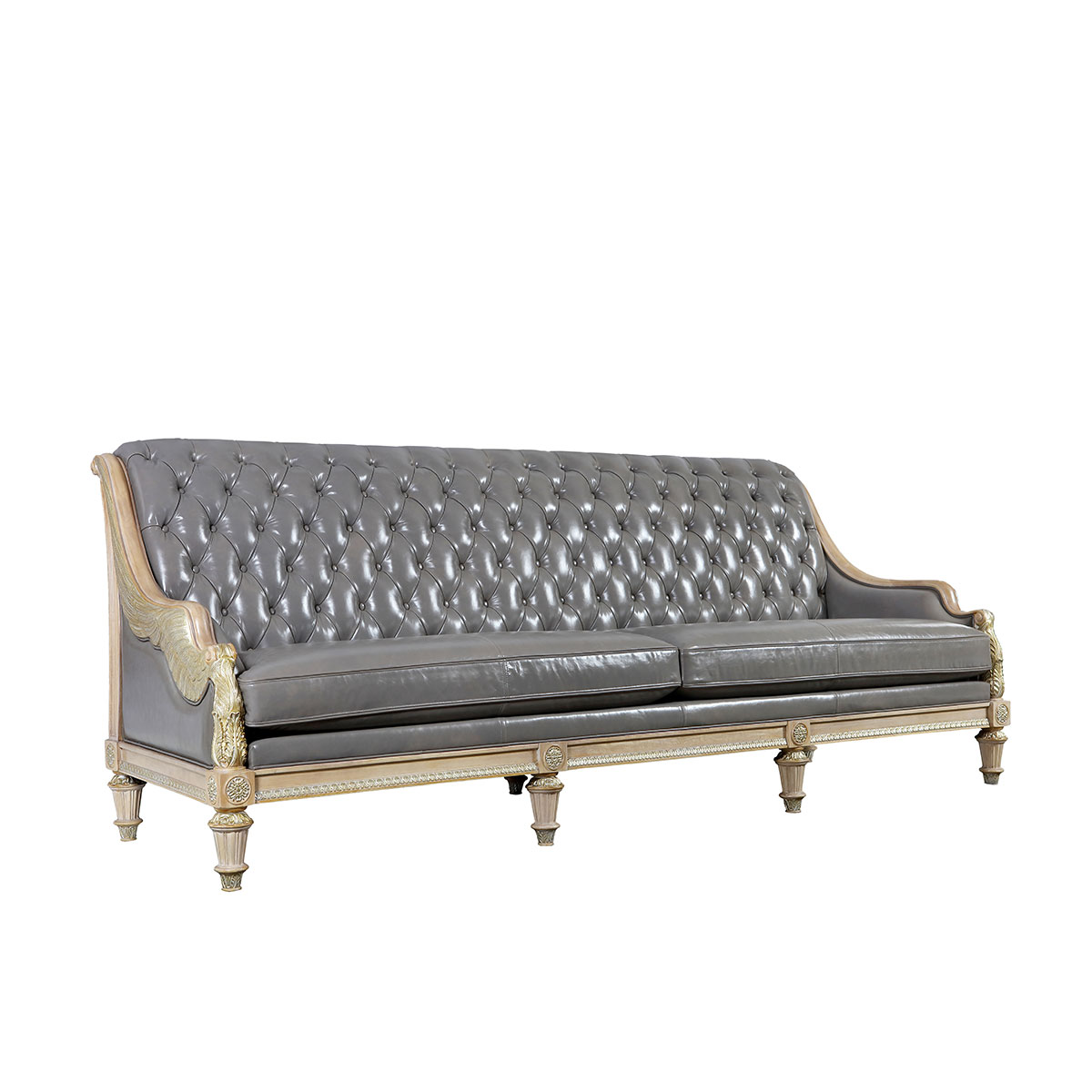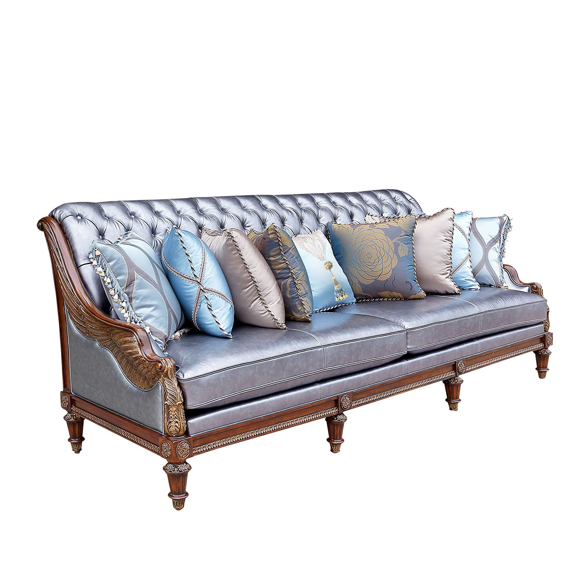 * 本款沙發可選擇四片拆裝(底座、左扶手、右扶手、后背) * 手工雕刻的工藝細節 * 細致的拉扣工藝和包有豐厚的填充物坐墊; * 標配抱枕:550*550 6個 480*480 1個 * 提供多種面料可供選擇;