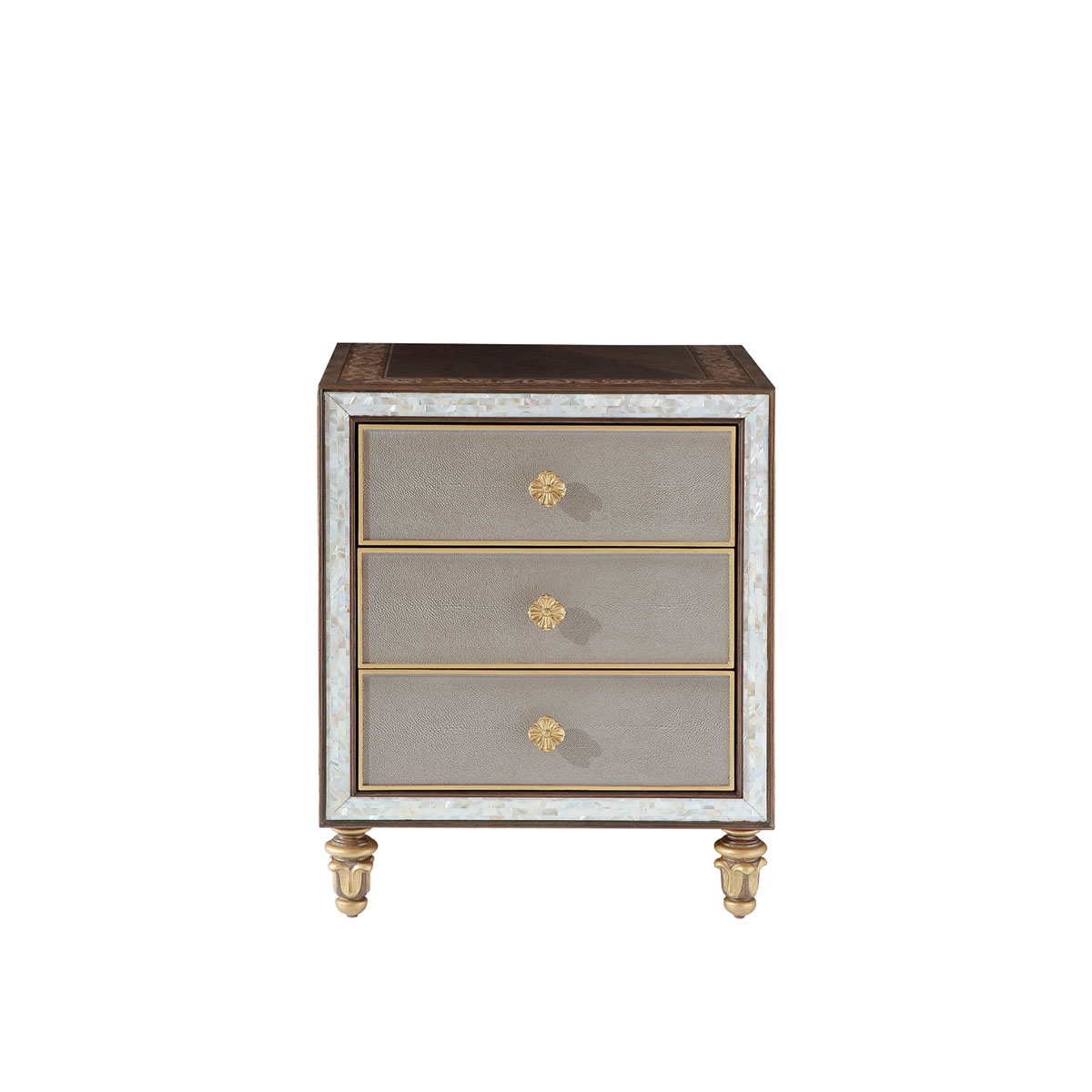 橡膠木+環保人造板+貝殼+黑胡桃+艷陽花+櫻桃木等木皮貼面+皮革