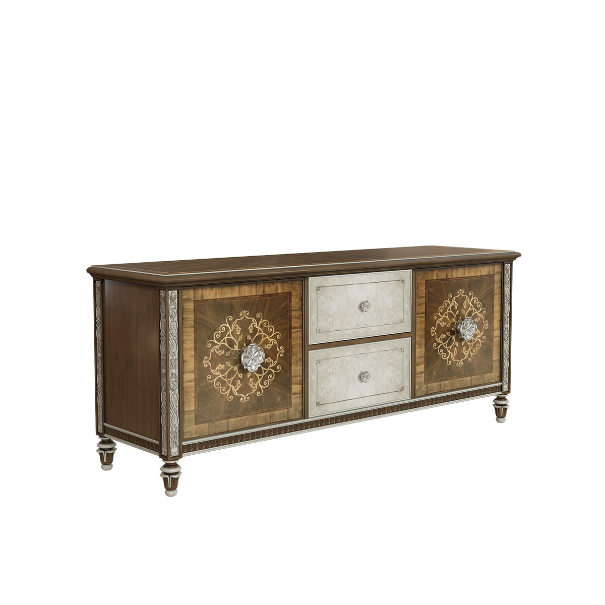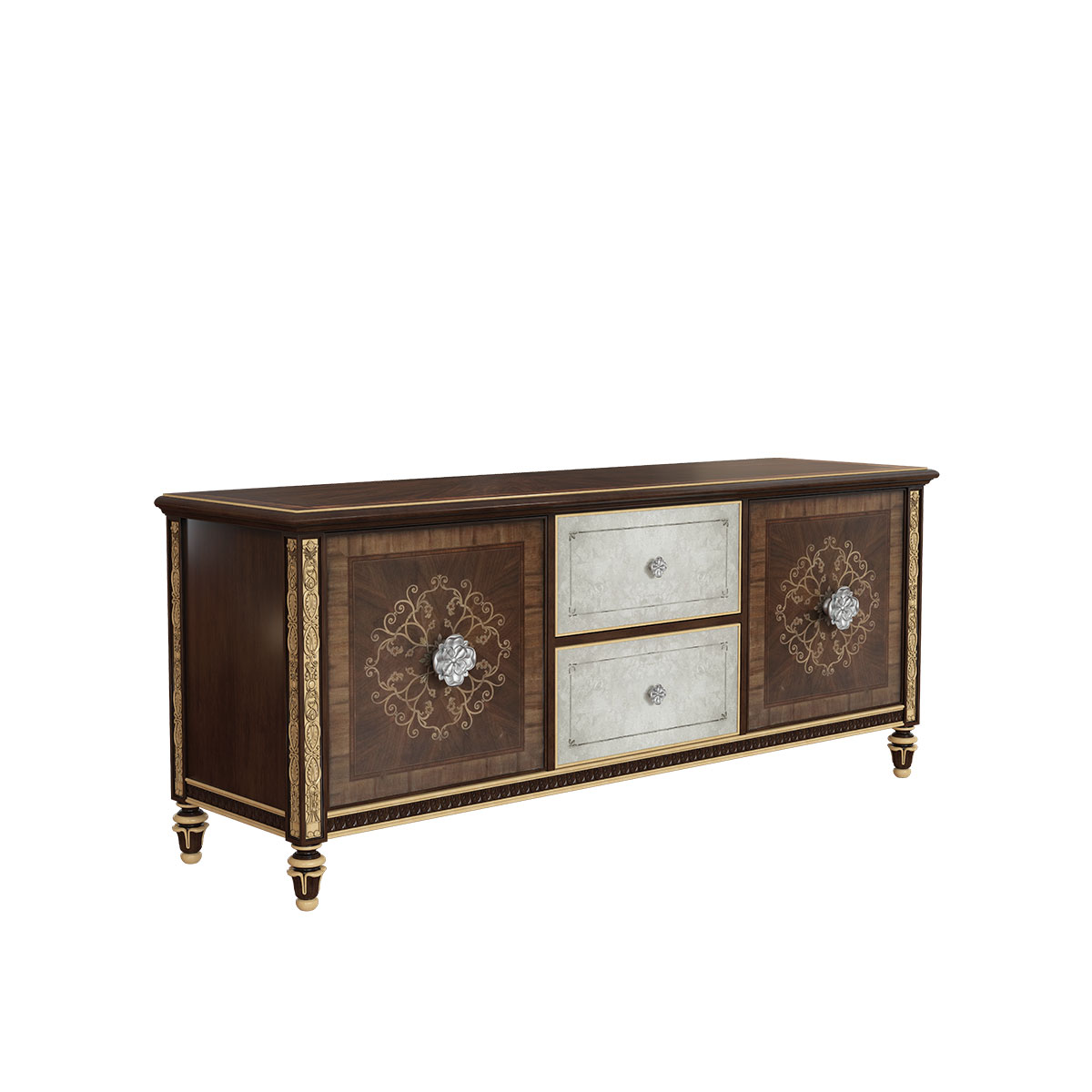 橡膠木+環保人造板+黑胡桃+艷陽花+櫻桃木等木皮貼面+藝術玻璃