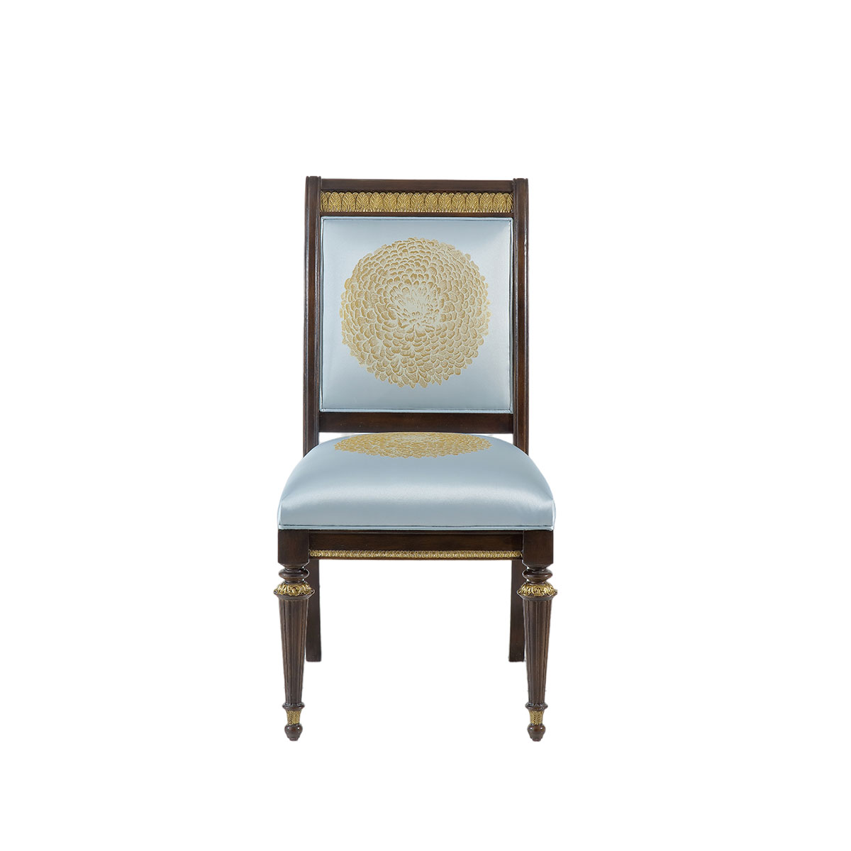 * 以17世紀(jì)意大利帝國EMPIRE風(fēng)格為設(shè)計(jì)元素,結(jié)合意大利人重生活懂藝術(shù)的品位追求,使用代表榮譽(yù)的月桂葉型雕刻和錐形的腿腳設(shè)計(jì)、精致的手工雕刻細(xì)節(jié)和描金工藝,以顯示王權(quán)的穩(wěn)固地位;搭配以意大利國花 ——雛菊為意念的金菊?qǐng)D案,還有布藝和厚實(shí)柔軟的填充物,精彩展現(xiàn)了意式家具奢華絢麗而又極富藝術(shù)人文氣息的迷人魅力。