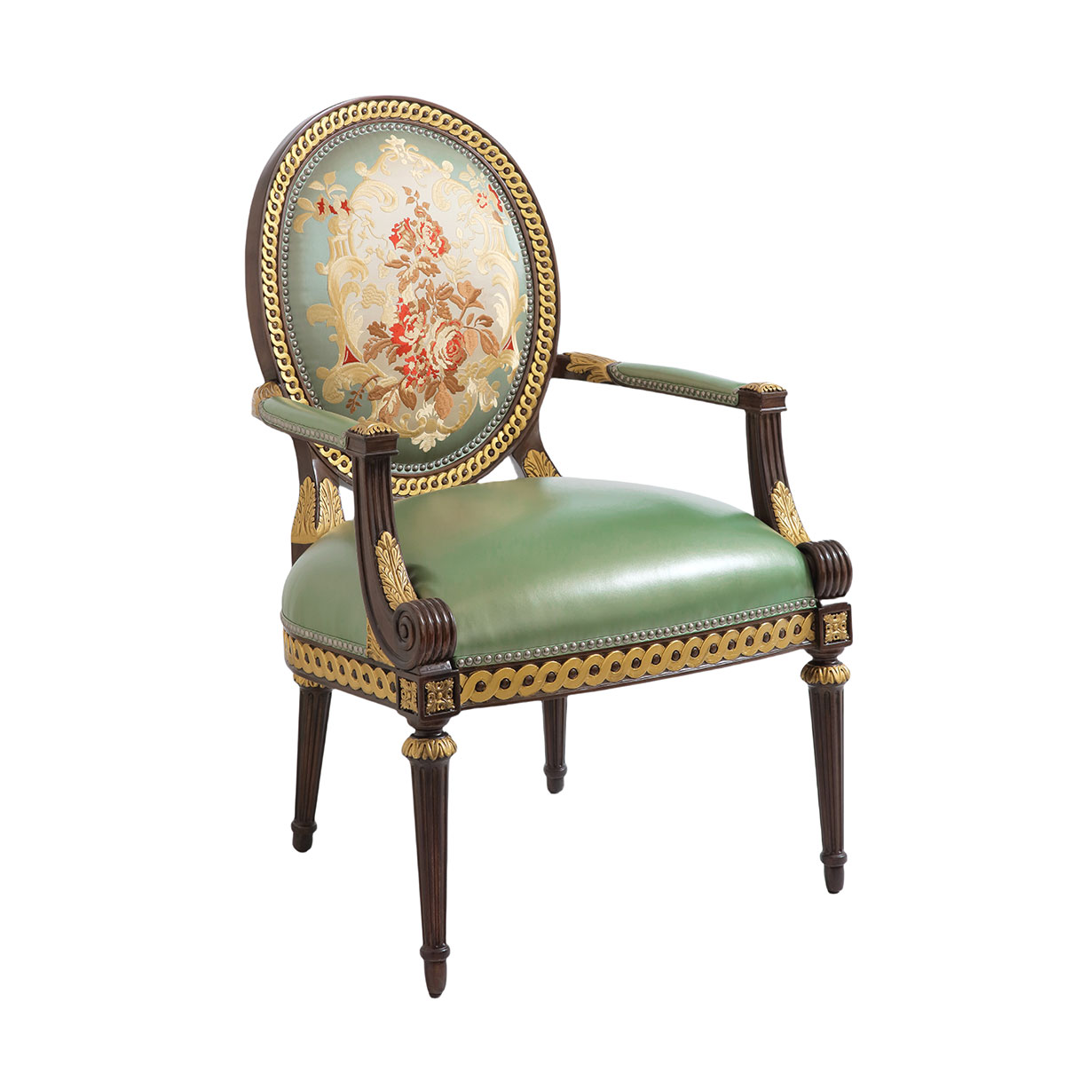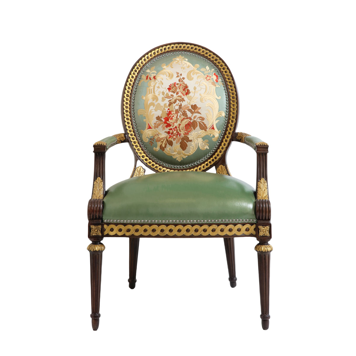 * 精細的手工雕刻配上仿金箔工藝結合十八道油漆工藝 * 坐墊和靠背包有豐厚的填充物; * 可拆裝的軟包座墊, * 提供多種面料可供選擇