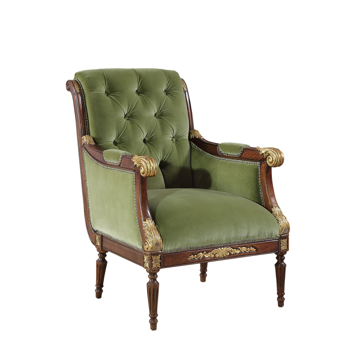 卷葉雕刻的扶手設計、舒適的椅背角度、細致的雕刻和貼金箔工藝。這款休閑椅是QueenVictoria(維多利亞女皇)時期的設計,我們還可以在她晚年的照片中找到它的蹤影。并配上觸感舒適的布藝和包有豐厚的填充物坐墊和靠背。