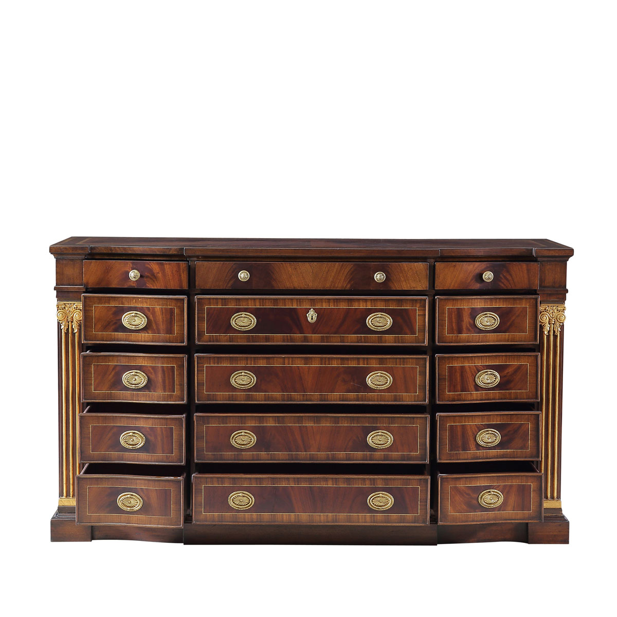 * 為表現英國皇室的華麗和莊嚴,以英國溫莎堡為設計元素。使用優雅的 Ionic Order(愛奧尼克式羅馬柱)雕刻,配上耀眼的貼金箔工藝與仿鎖孔設計,完美演繹了英式宮廷家具的奢華尊貴,可謂是極具典藏價值的傳世之作。