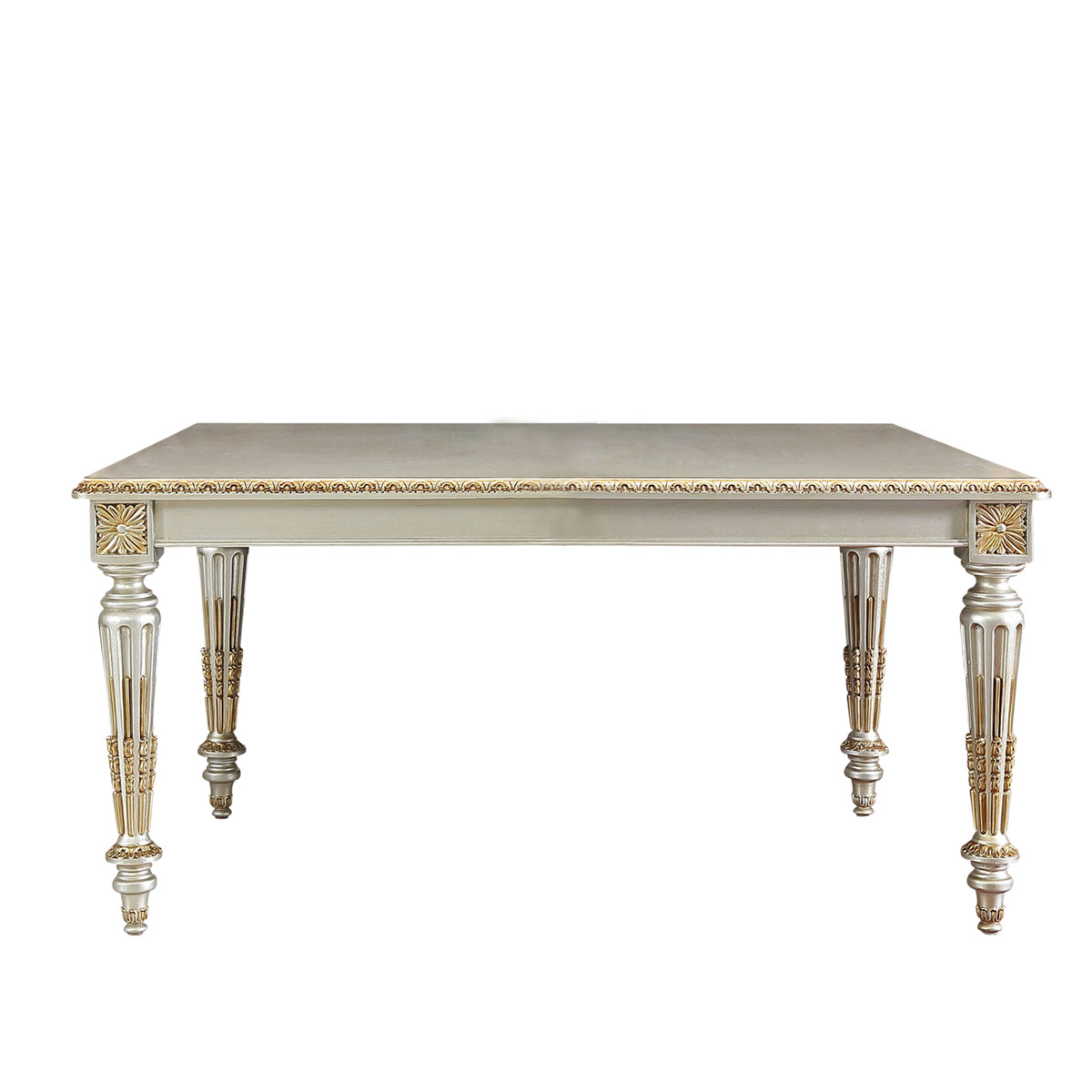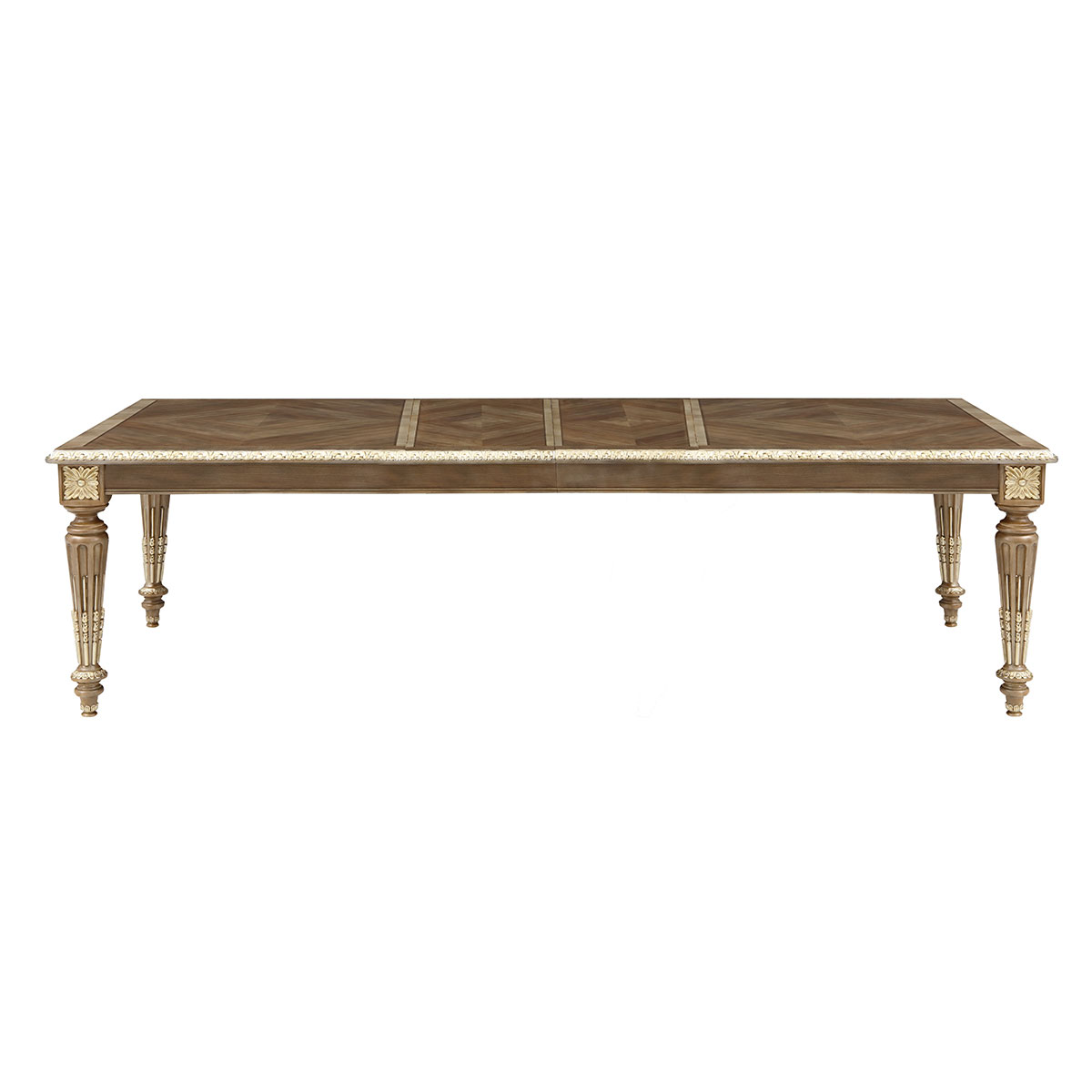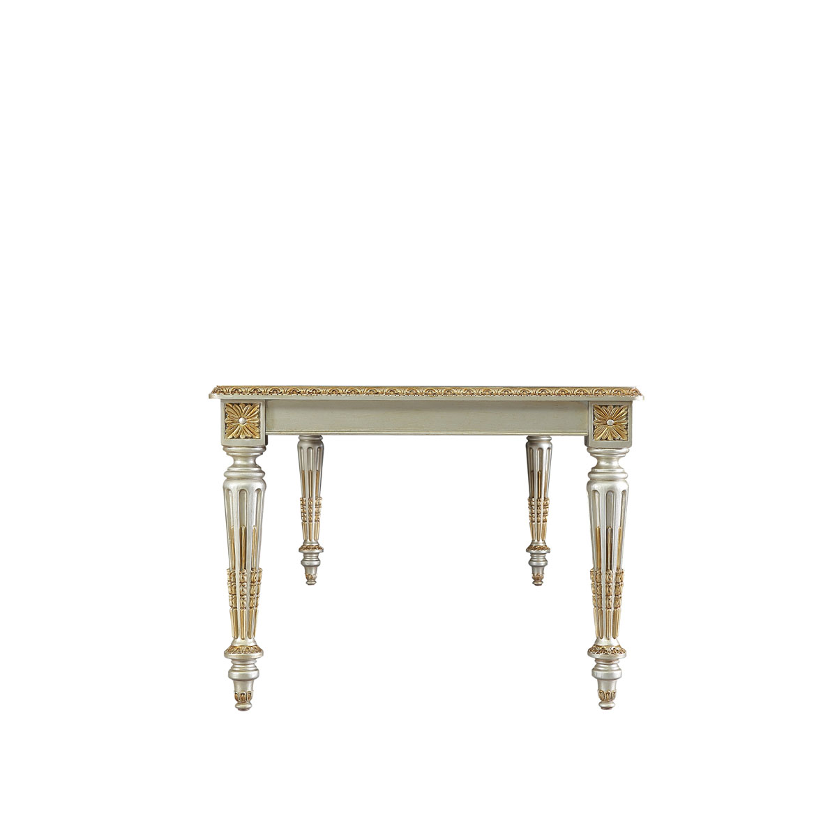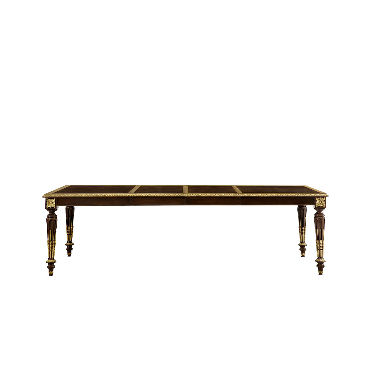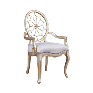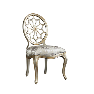 * 為表現(xiàn)法國(guó)路易時(shí)期的莊嚴(yán)和浪漫,以法國(guó)凡爾賽宮為設(shè)計(jì)元素。使用歌頌路易十四時(shí)期的太陽(yáng)花雕刻,顯示其王權(quán)穩(wěn)固地位的錐形腿腳設(shè)計(jì);配以鉆石圖案木皮貼面和貼金工藝,完美演繹了法式宮廷家具的奢華尊貴.