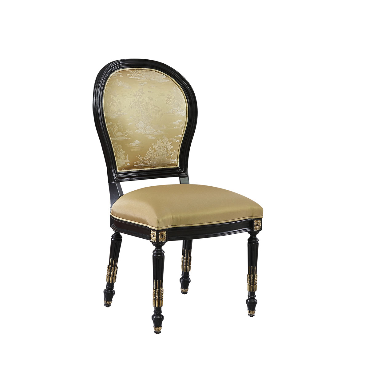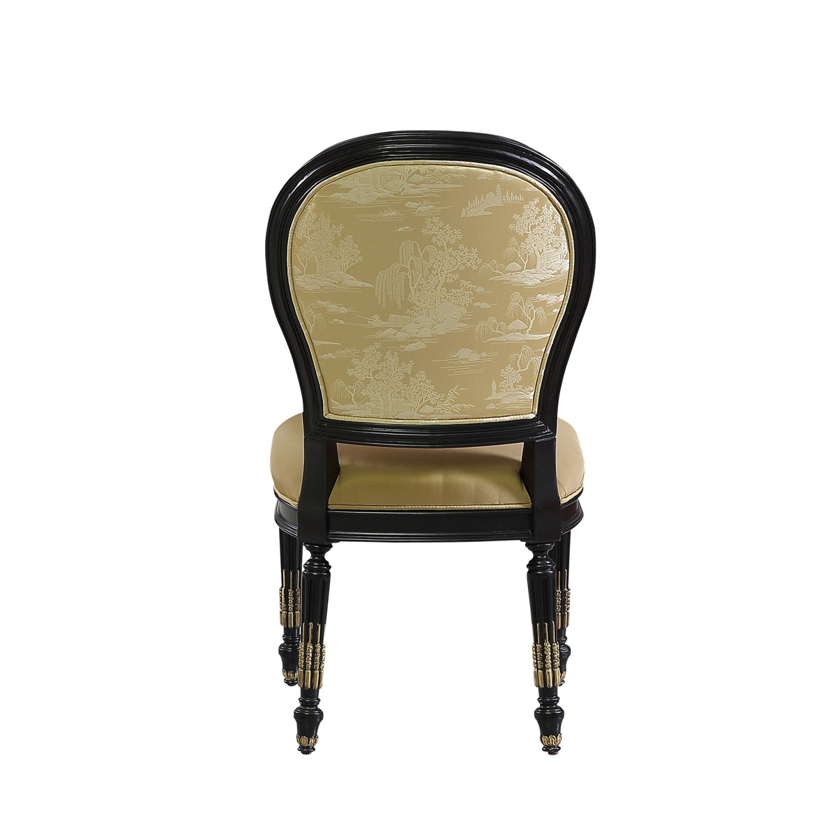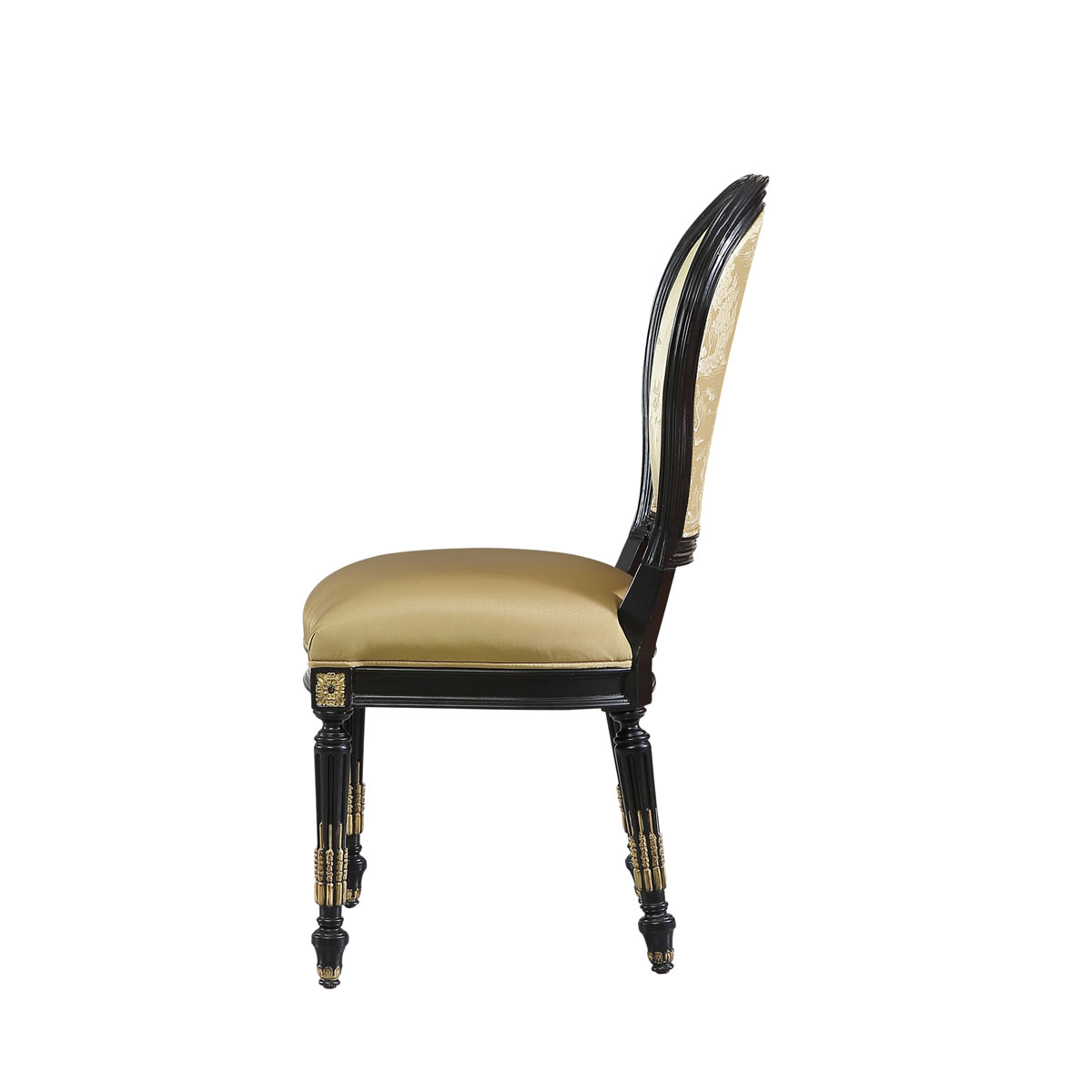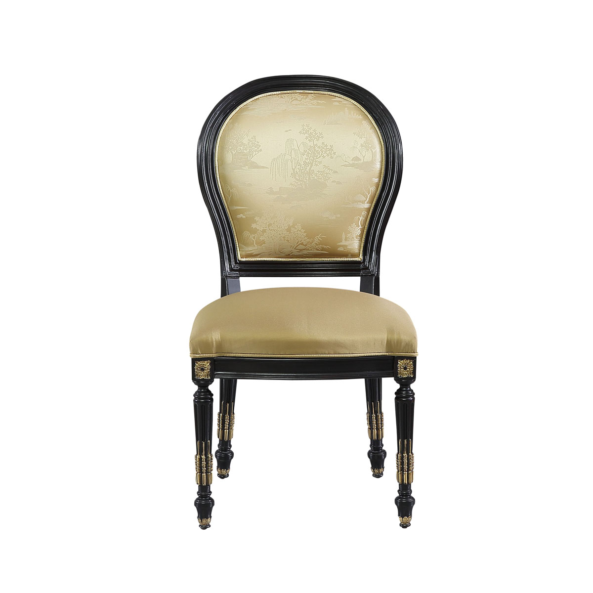 * 參考路易十六時期的古董造型設計,使用小提琴構造椅背和路易十六時期的建筑柱雕刻柱,配以精致的手工雕刻細節和涂金工藝、舒適的布藝面料和厚實柔軟的填充物,是豪華系列凡爾賽玫瑰法式單椅的特色。
