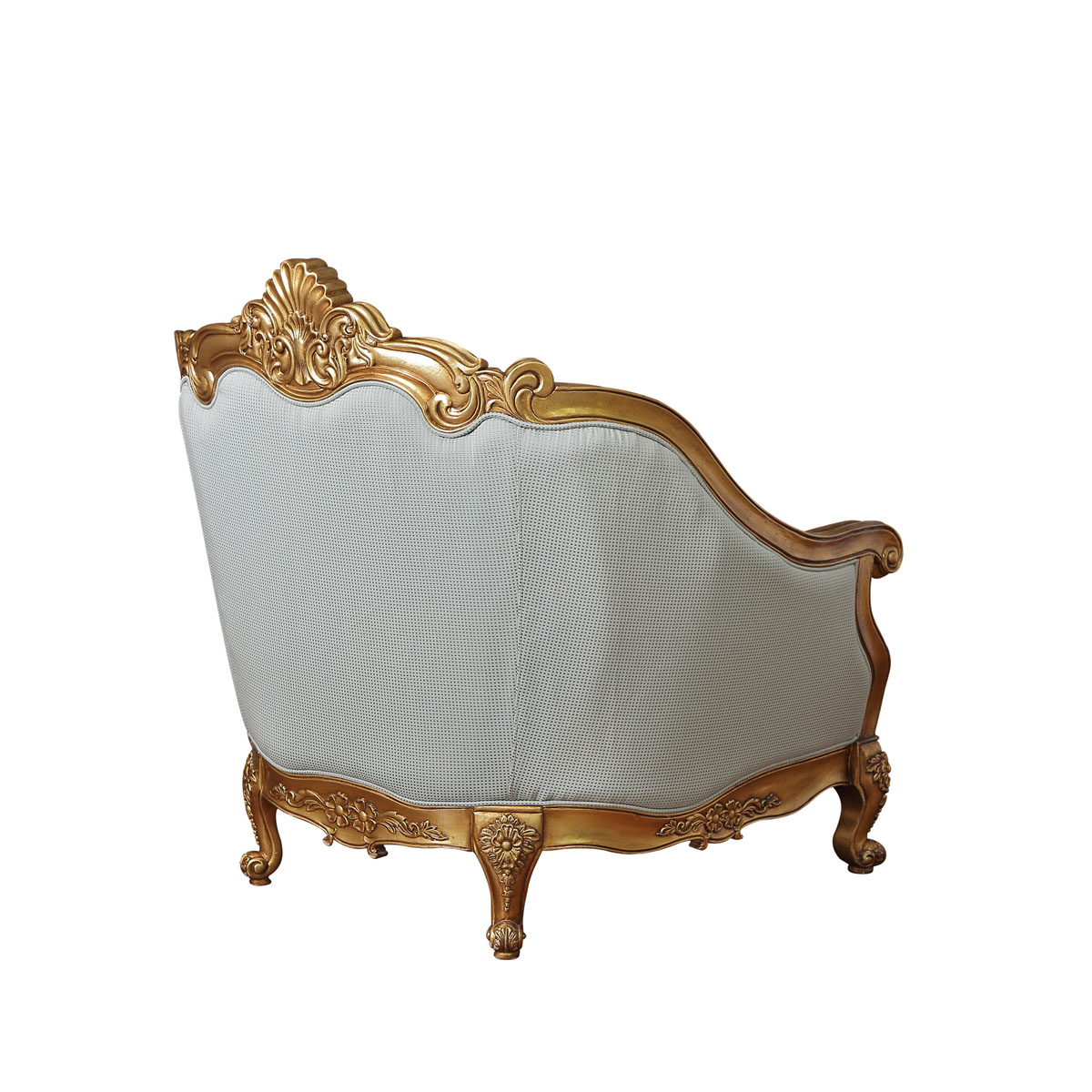 * 為表現法國路易時期的莊嚴與浪漫,以凡爾賽宮為設計元素。猶如凡爾賽宮建筑頂的沙發造型,搭配實木雕刻, 雙重觸感的軟包配搭和包有豐厚的填充物, 完美演繹了法式宮廷家具的奢華尊貴