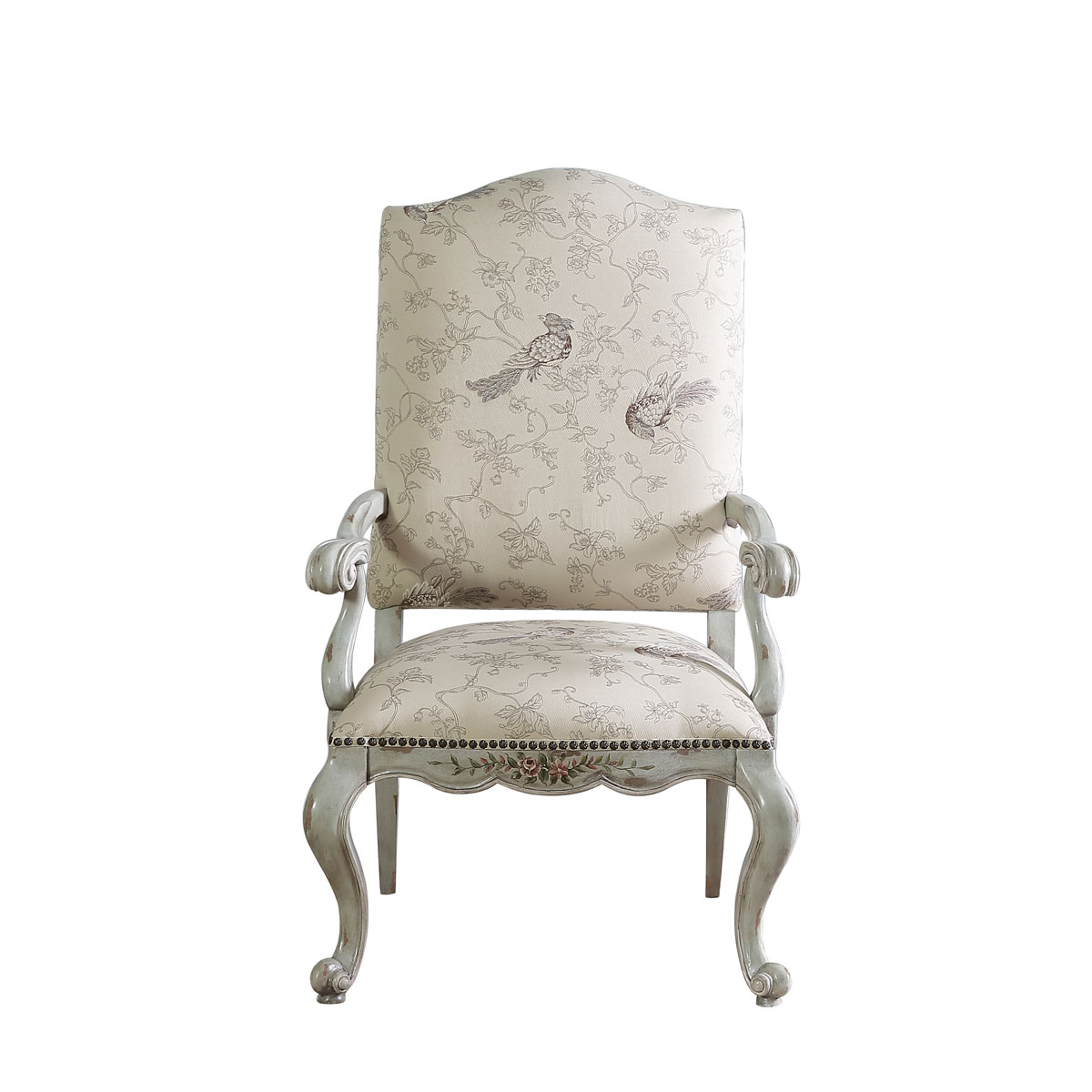 * 一款集合法式元素包括Camelback Silhouette(駝峰輪廓)造型、旋渦形扶手和S形彎腳的高背休閑椅,并配上觸感舒適的布藝和包有豐厚的填充物坐墊和靠背;