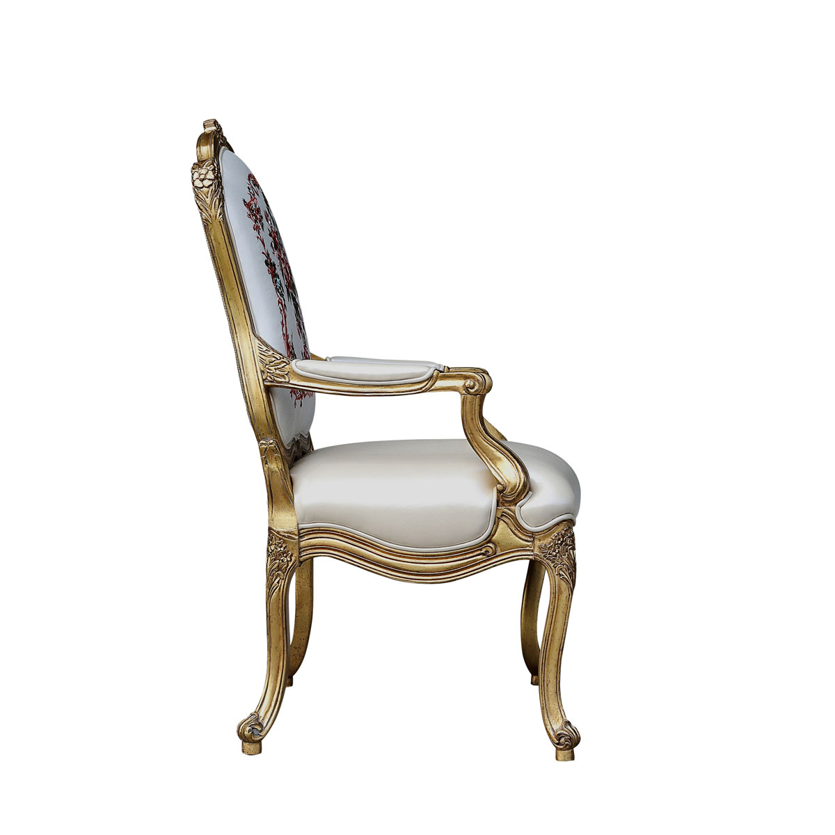 * 以 Louis VX (路易十五)時期洛可可式涂金古董扶手椅為設計靈感,華麗的曲線輪廓配以細膩的雕刻,呈現出法國宮廷的浪漫。不對稱設計的花型布藝設計,更是把洛可可風格的美表達得淋漓盡致。