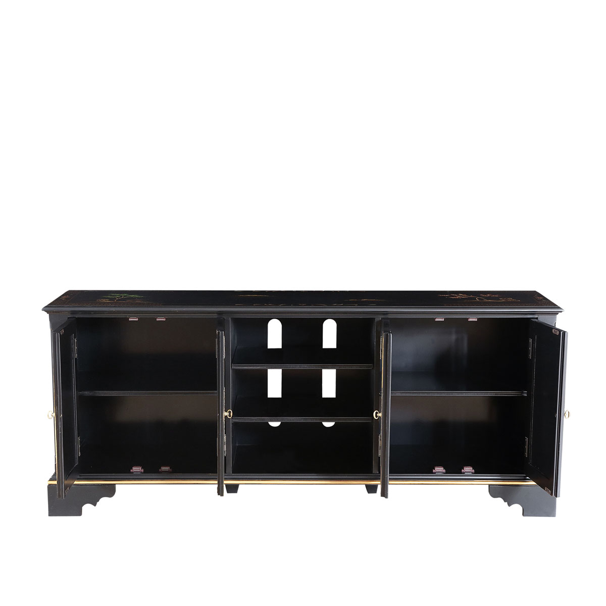 * 手工木皮拼貼工藝結實的連接技術18道以上的多步驟油漆工藝; * 下座分別有2塊可移動式層板,為開空設計,方便取用物品,兩扇門內各有2塊可調層板;