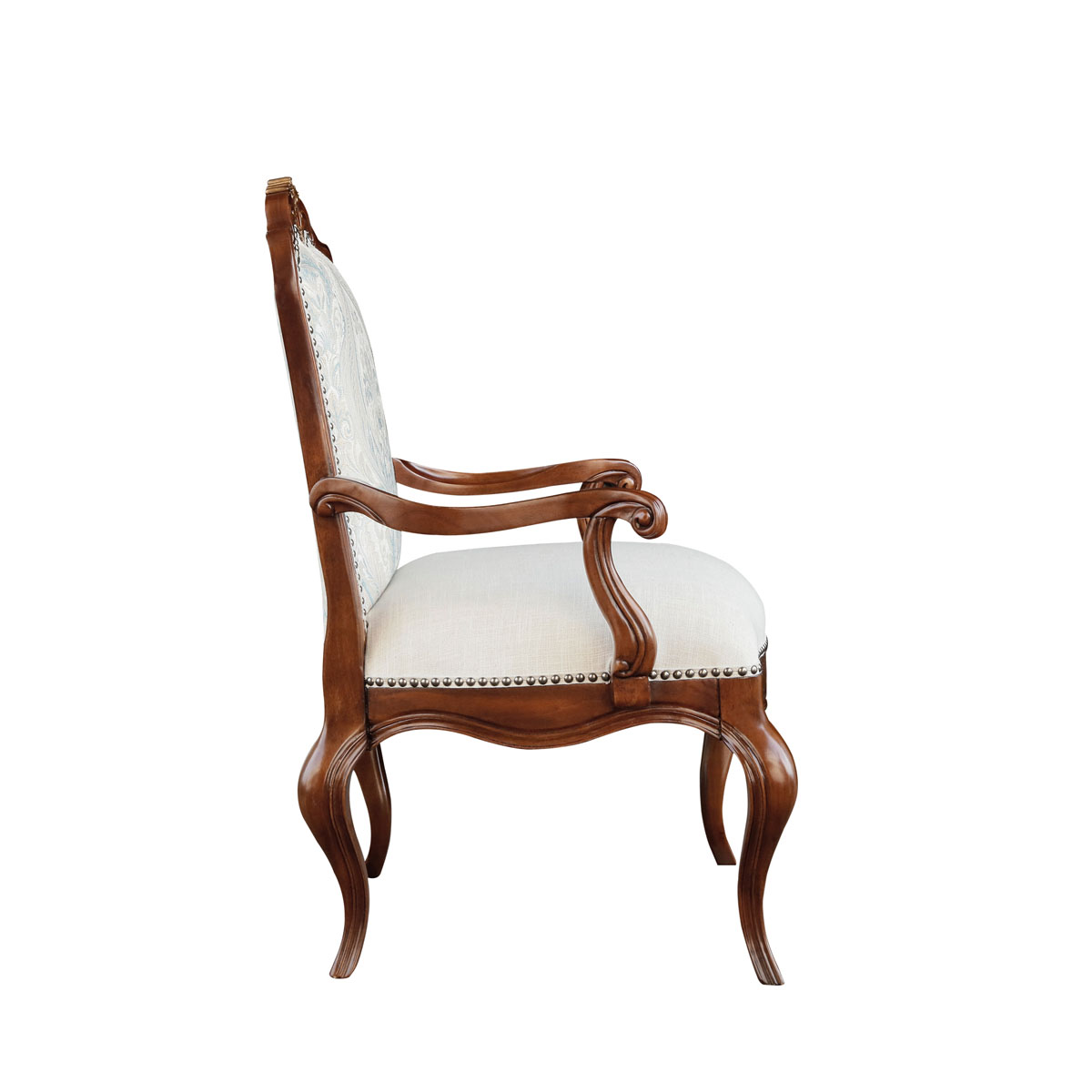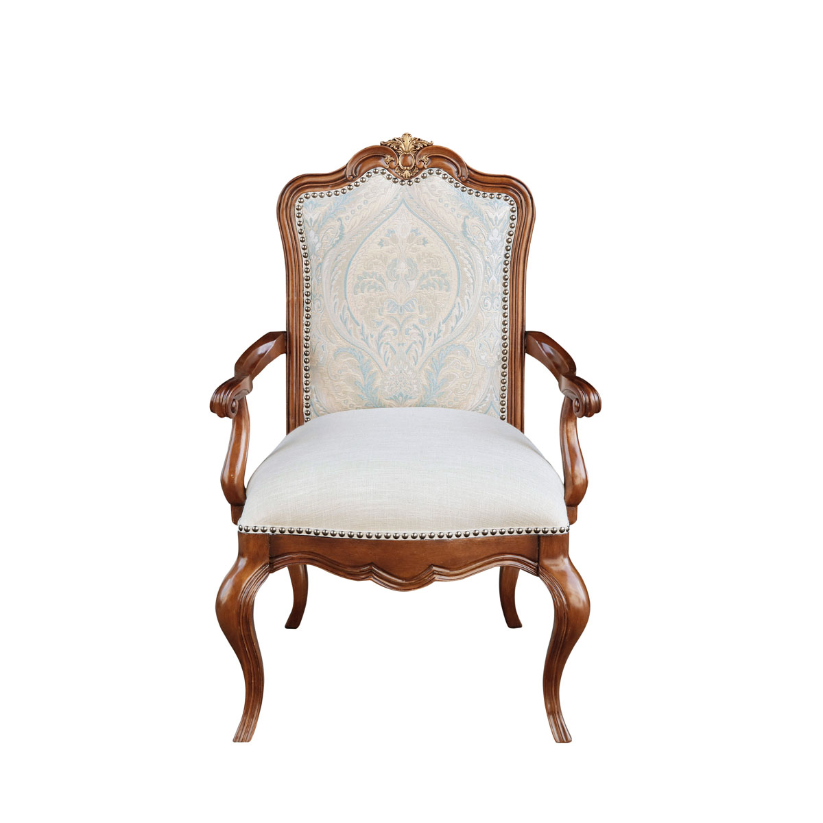* 扶手椅周邊有過百銅釘突顯格調(diào); * 椅背前后方及坐墊包有豐厚的填充物; * 可拆裝的軟包座墊; * 提供多種面料可供選擇;