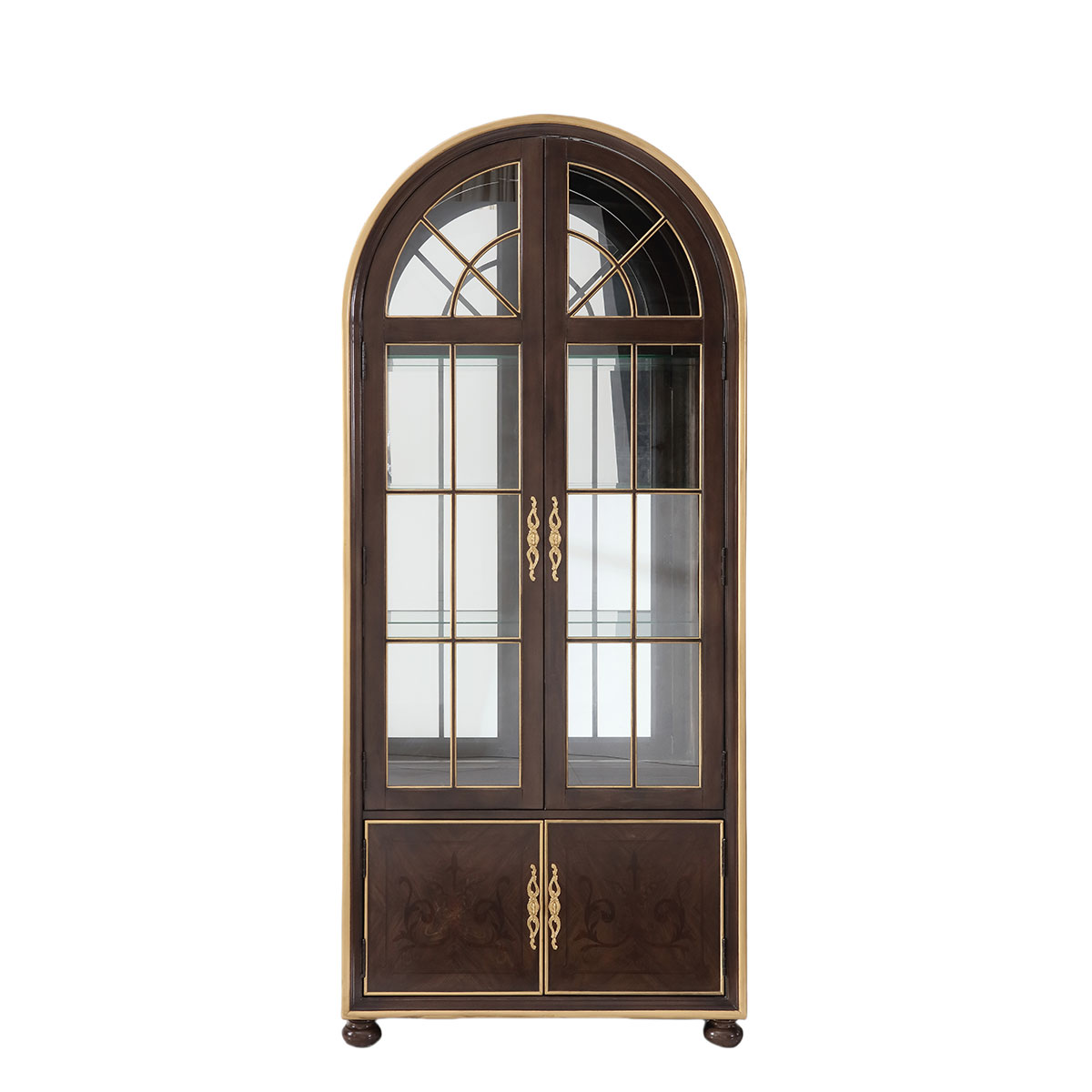 * 門內有三塊玻璃層板,背板處裝有背鏡,使柜身內部的光線更通亮; * 下門內有一塊可調木制層板;