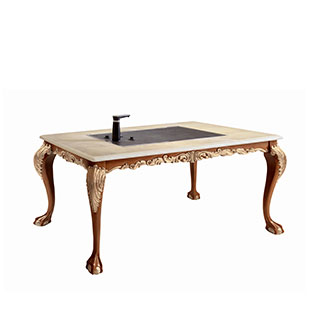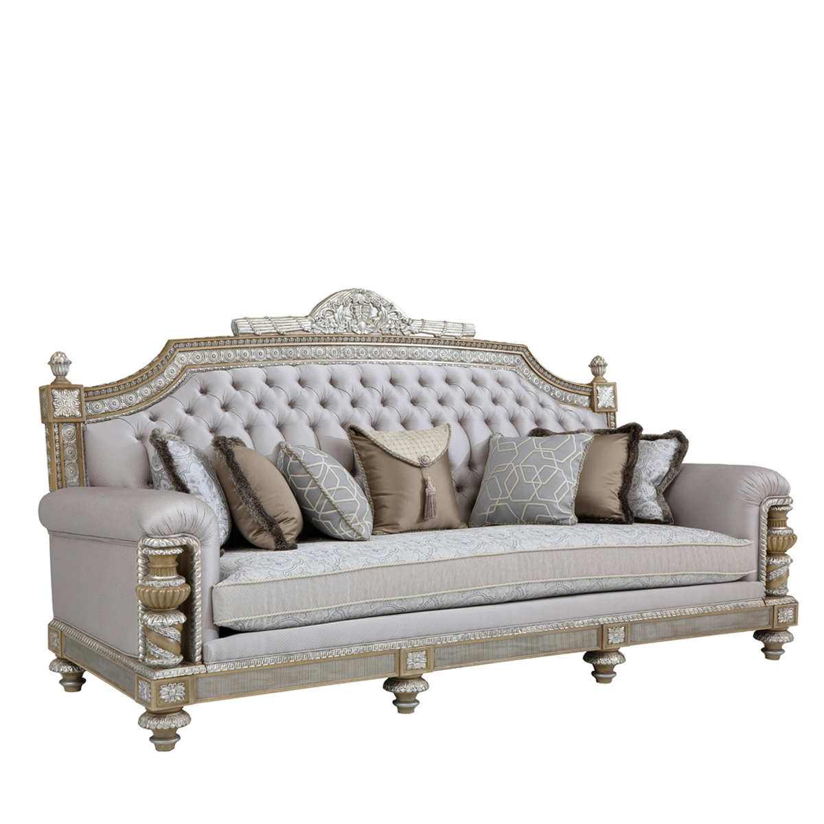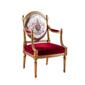 * 以英國溫莎城堡中喬治四世時期的臥床為設計意念,使用皇家御用的桃花心木為主要材質,配以精致的雕刻和貼金工藝,表達英國皇室尊貴的地位。同時使用舒適的軟包和柔順的布藝,使藝術和生活結合,表達英國君王客廳應有的品質,是溫莎堡系列英式沙發的特色。